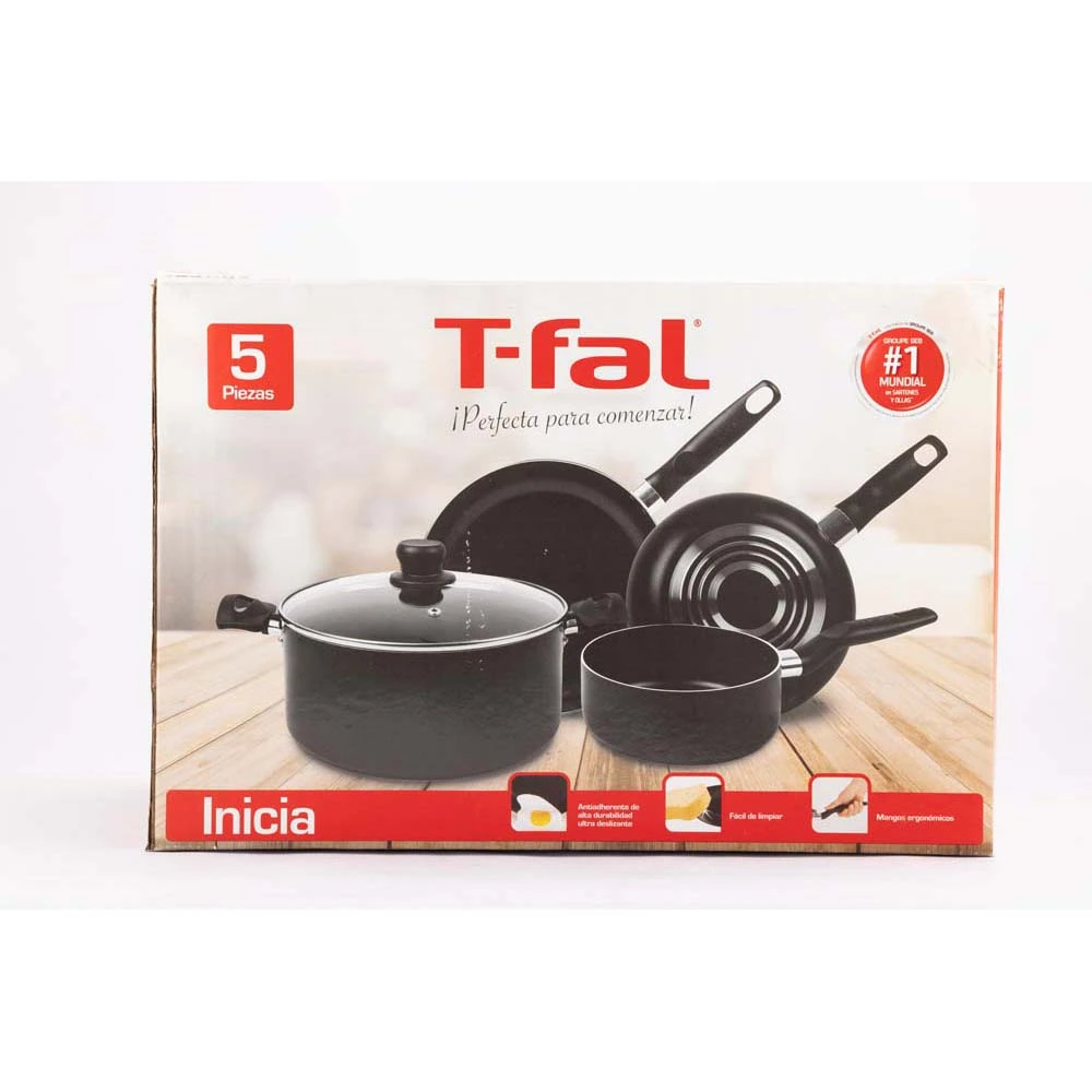 La Batería de Cocina Inicia Vital 5 piezas de Aluminio T-Fal está diseñada para quienes buscan comodidad, resistencia y una cocción perfecta en cada platillo. Con un grosor de 5 mm y recubrimiento antiadherente de última generación, garantiza un rendimiento superior en la cocina, ya que nada se le pega y ofrece un gran deslizamiento, lo que facilita la preparación de tus recetas favoritas.