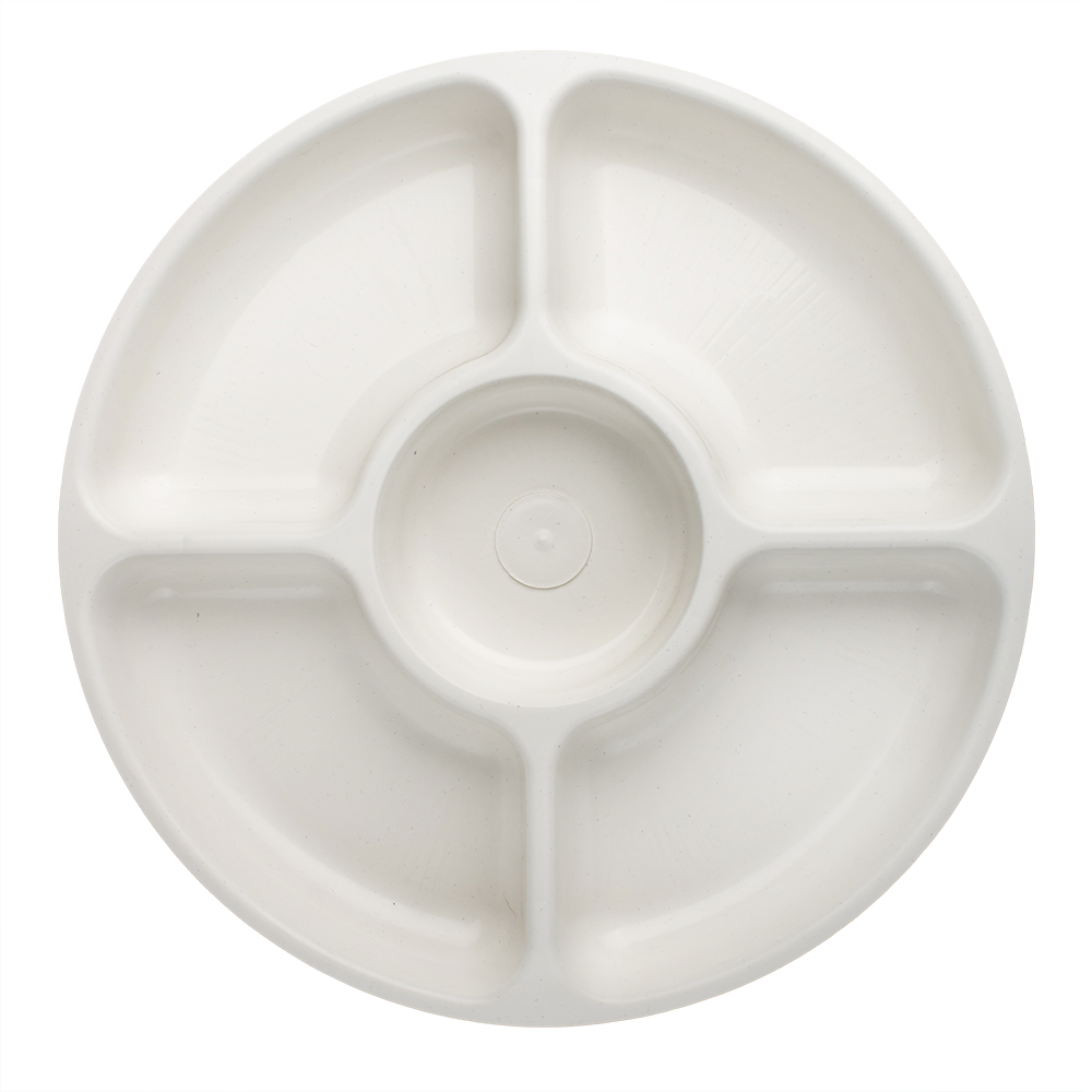 Cada uno de los 5 compartimentos permite separar alimentos sin mezclar sabores, haciendo más cómoda la experiencia al compartir. Ya sea que lo utilices para guacamole, salsas, queso crema, aceitunas o botanas dulces, este Botanero Dip Plástico Blanco Boris facilita la organización y presentación de tus platillos.