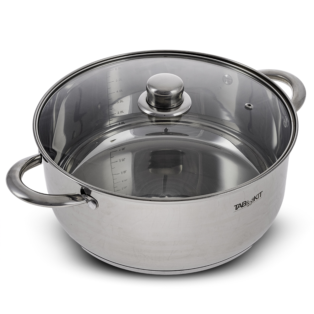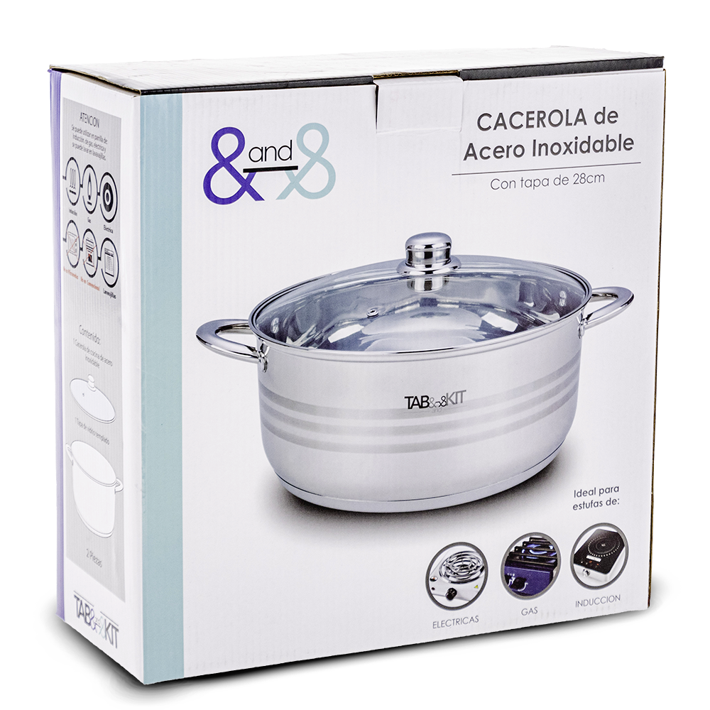 La Cacerola 6.5L Acero Inoxidable Tab and Kit modelo TKS001, es el utensilio de cocina ideal para quienes buscan durabilidad, funcionalidad y gran capacidad en una sola pieza. Con un diámetro de 28 cm y una capacidad de 6.5 litros. Esta cacerola es perfecta para preparar grandes cantidades de alimentos, ideal para familias numerosas, eventos, o para quienes disfrutan cocinar en gran escala.