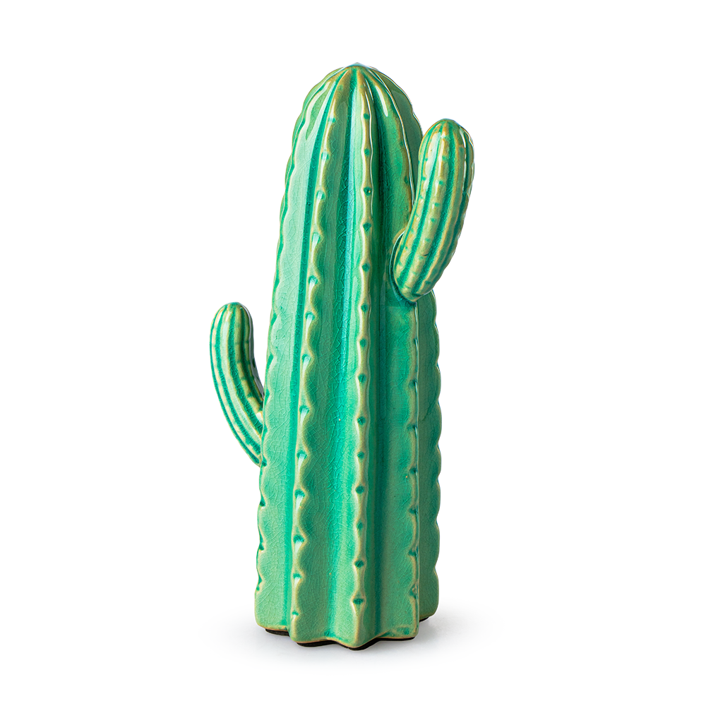 Fabricado en cerámica resistente, el Cactus Decorativo combina estilo con durabilidad, asegurando que tu decoración se mantenga impecable por años. Con unas medidas de 25cm de altura, 13cm de ancho y 8cm de diámetro en la base. Su tamaño es perfecto para colocarlo en estanterías, escritorios, mesas auxiliares o incluso como parte de un arreglo temático más grande. Su presencia añade altura y textura al ambiente, creando un contraste visual atractivo que destaca entre otros elementos decorativos.