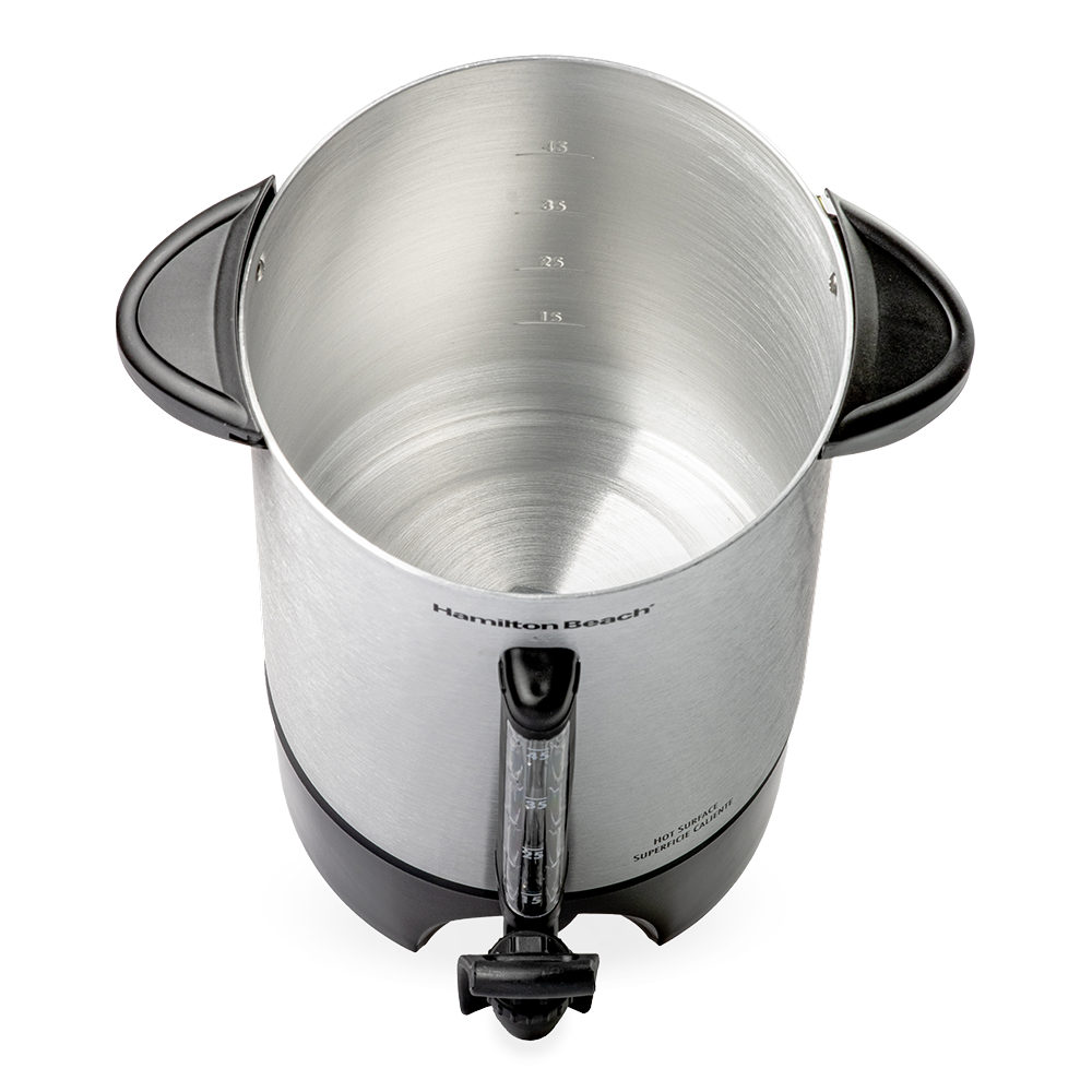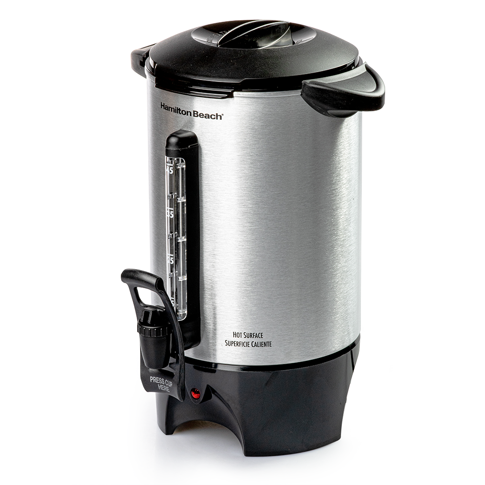 La Cafetera 45 Tazas Hamilton Beach es la solución ideal para preparar café en grandes cantidades, perfecta para oficinas, eventos, reuniones familiares, iglesias o cualquier ocasión donde se necesite servir a muchos invitados. Su diseño funcional y elegante en acero inoxidable cepillado no solo ofrece durabilidad, sino también un toque profesional y moderno a cualquier espacio.