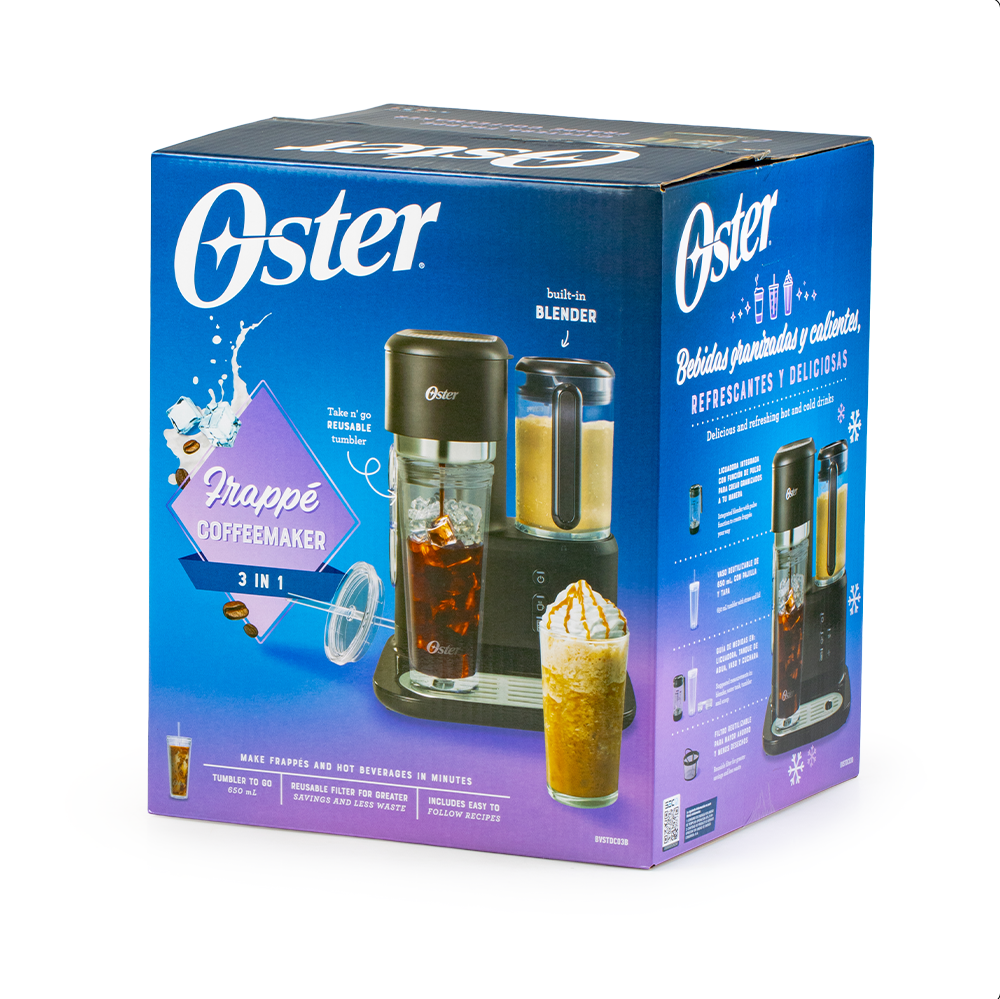 Su diseño avanzado simplifica tu vida, permitiendo bebidas granizadas, café caliente u opciones heladas. Esta cafetera y frappé con licuadora incorporada facilita disfrutar tus recetas. Además, la Cafetera Frapeé 3 en 1 Óster es la única herramienta que necesitas para ser tu propio barista experto.
