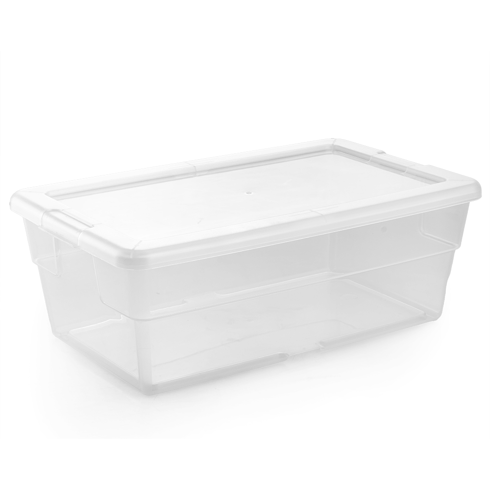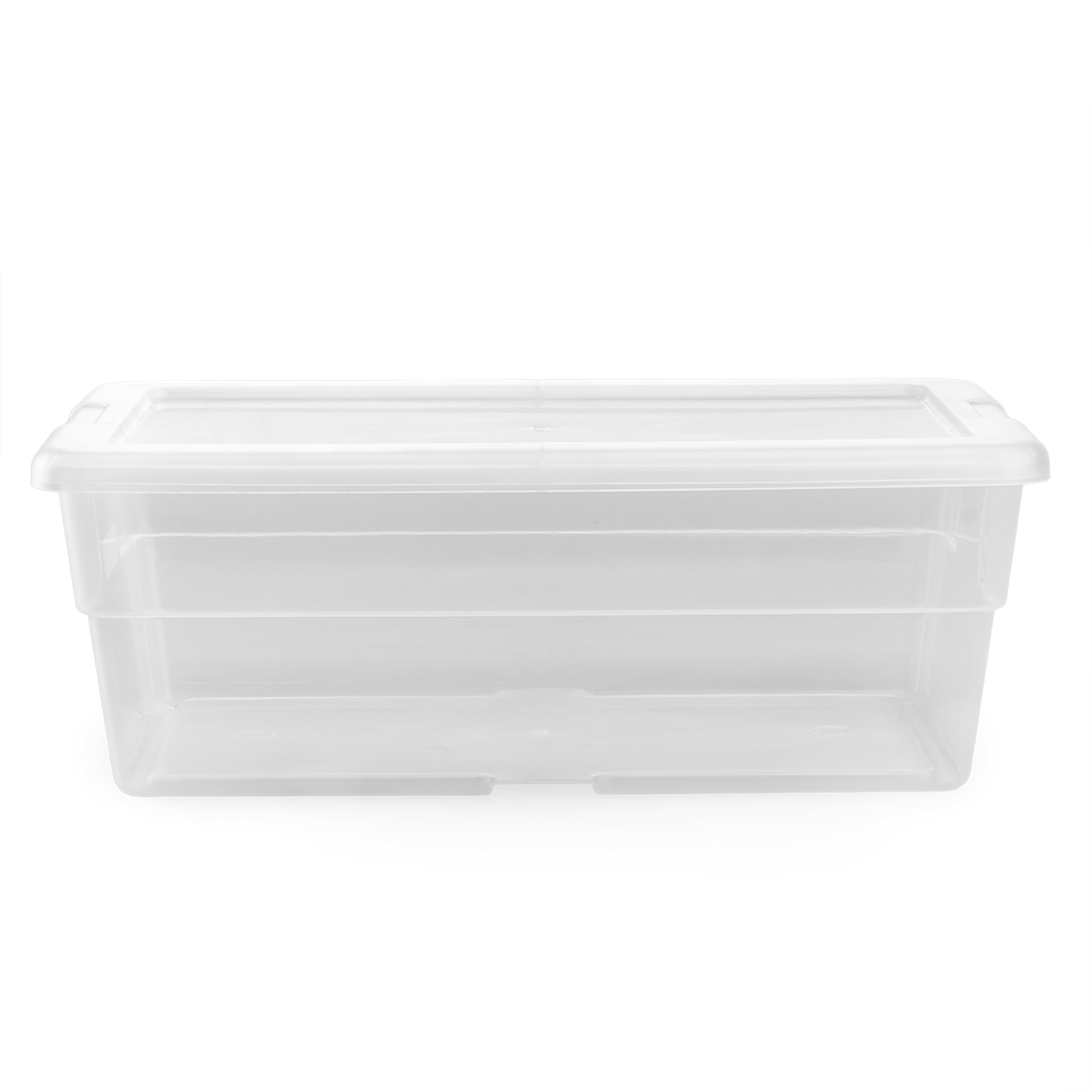 Con unas medidas de 34.5 cm de largo, 20 cm de ancho y 12 cm de alto, este modelo grande está pensado para guardar zapatos. Además, su diseño versátil también permite usarla como caja organizadora para guardar ropa interior, accesorios, juguetes, herramientas, productos de limpieza, cosméticos y más.