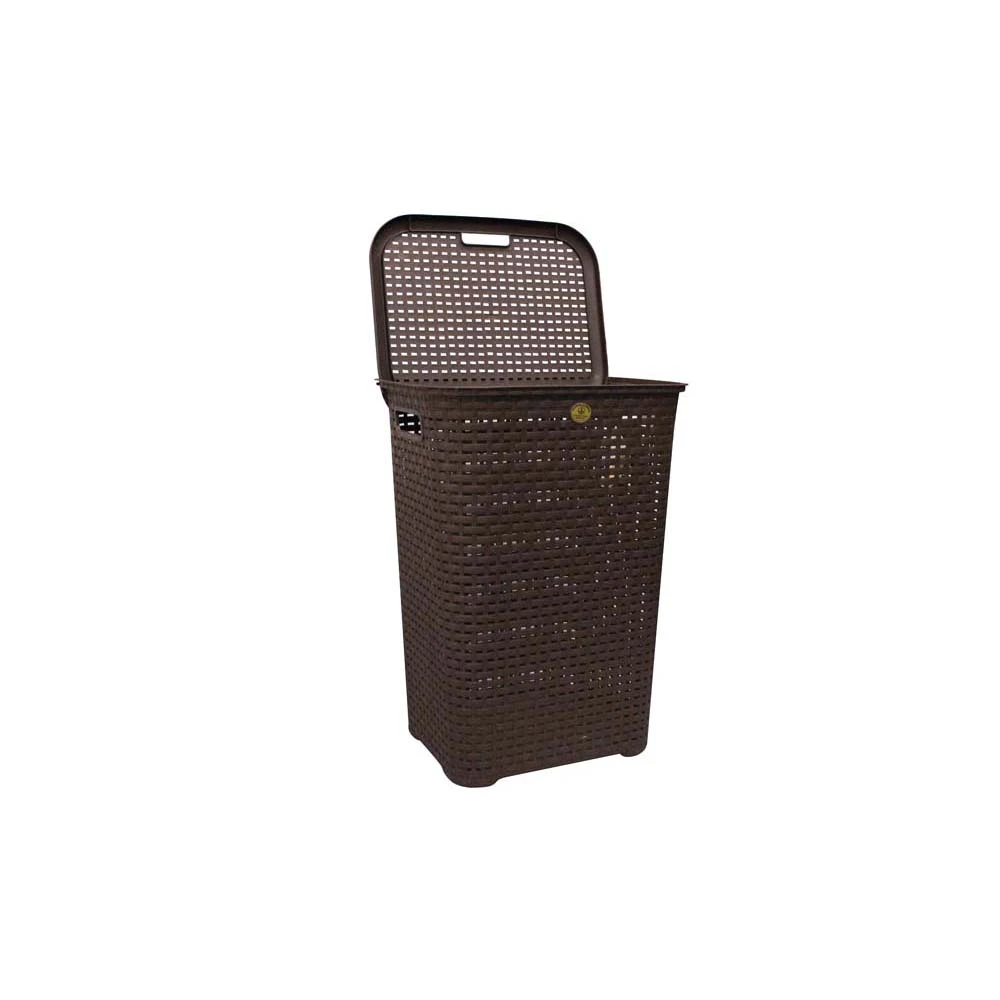 Por otra parte, su diseño estilo rattan en color chocolate aporta un toque elegante y neutro que combina fácilmente con diferentes estilos de decoración, ya sea en dormitorios, baños, lavanderías u oficinas. Asimismo, cuenta con agarraderas laterales, lo que facilita su transporte de un lugar a otro sin esfuerzo.