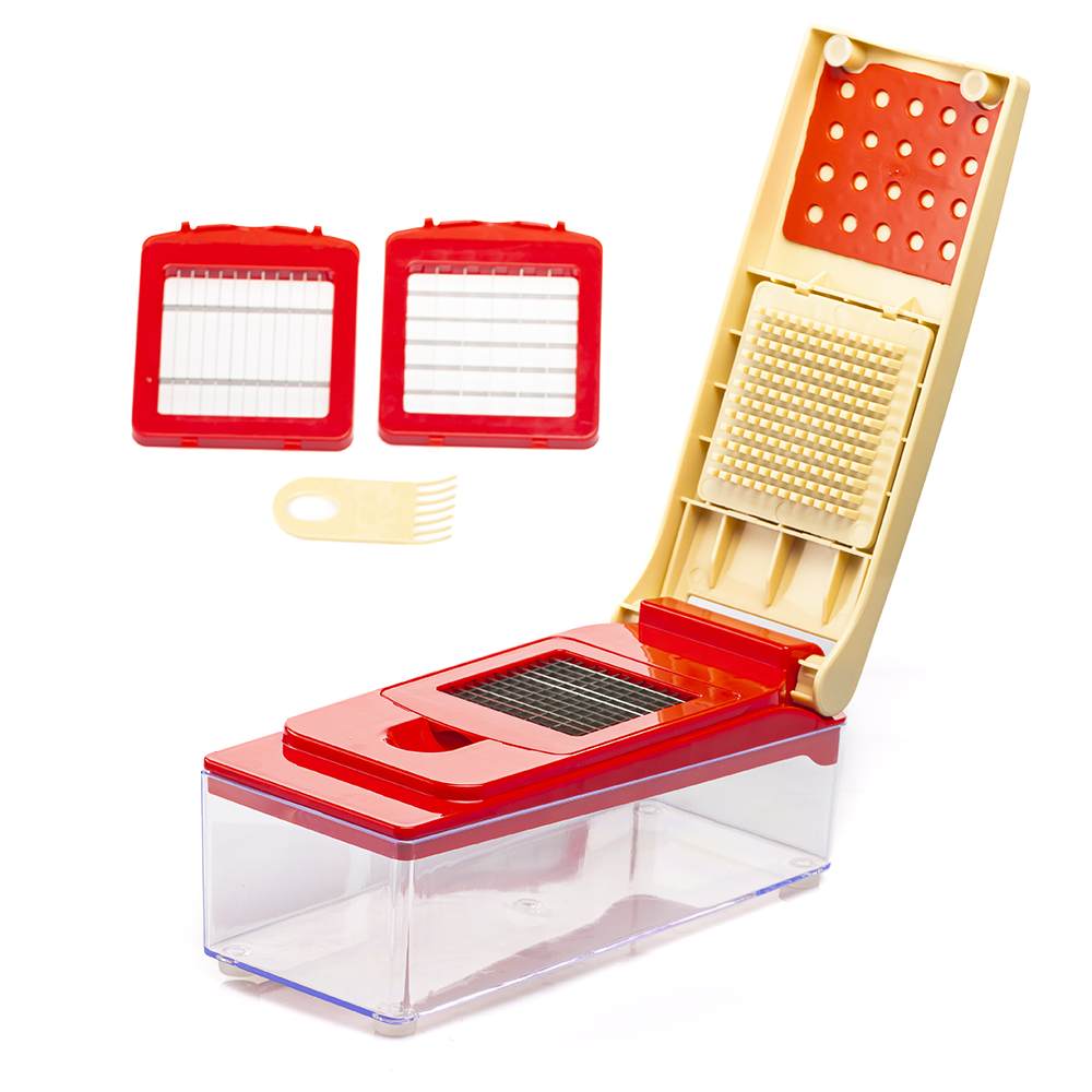 El Cortador French Cutter Plástico Turmix incluye 3 aditamentos con navajas de acero inoxidable muy afiladas. Además, su mecanismo ayuda a reducir el olor penetrante que desprende la cebolla al cortarla. Evita accidentes gracias a sus patas de goma antiderrapantes, asegurando estabilidad en la encimera. Es ideal para cocinas profesionales y domésticas.