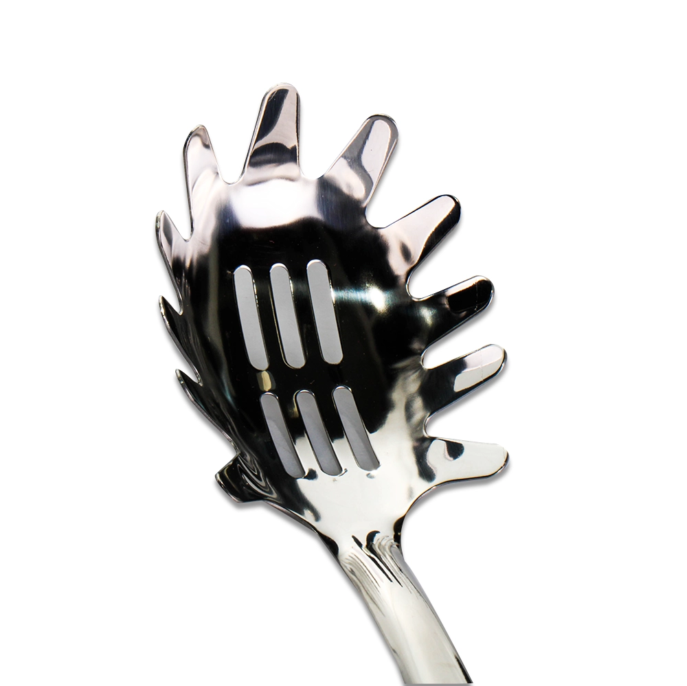 Gracias a su fabricación en acero inoxidable resistente, esta cuchara es perfecta para manipular espaguetis, fideos y otros tipos de pasta sin que se doblen o dañen las hebras. Su diseño permite recoger y escurrir la pasta de forma eficiente, evitando derrames y facilitando el emplatado profesional. El largo de 32cm proporciona la distancia ideal para trabajar cómodamente en ollas profundas, mientras que su estructura liviana reduce la fatiga en la cocina. Además, cuenta con un práctico orificio en el mango, perfecto para colgarla y mantener la organización en tu espacio de trabajo.