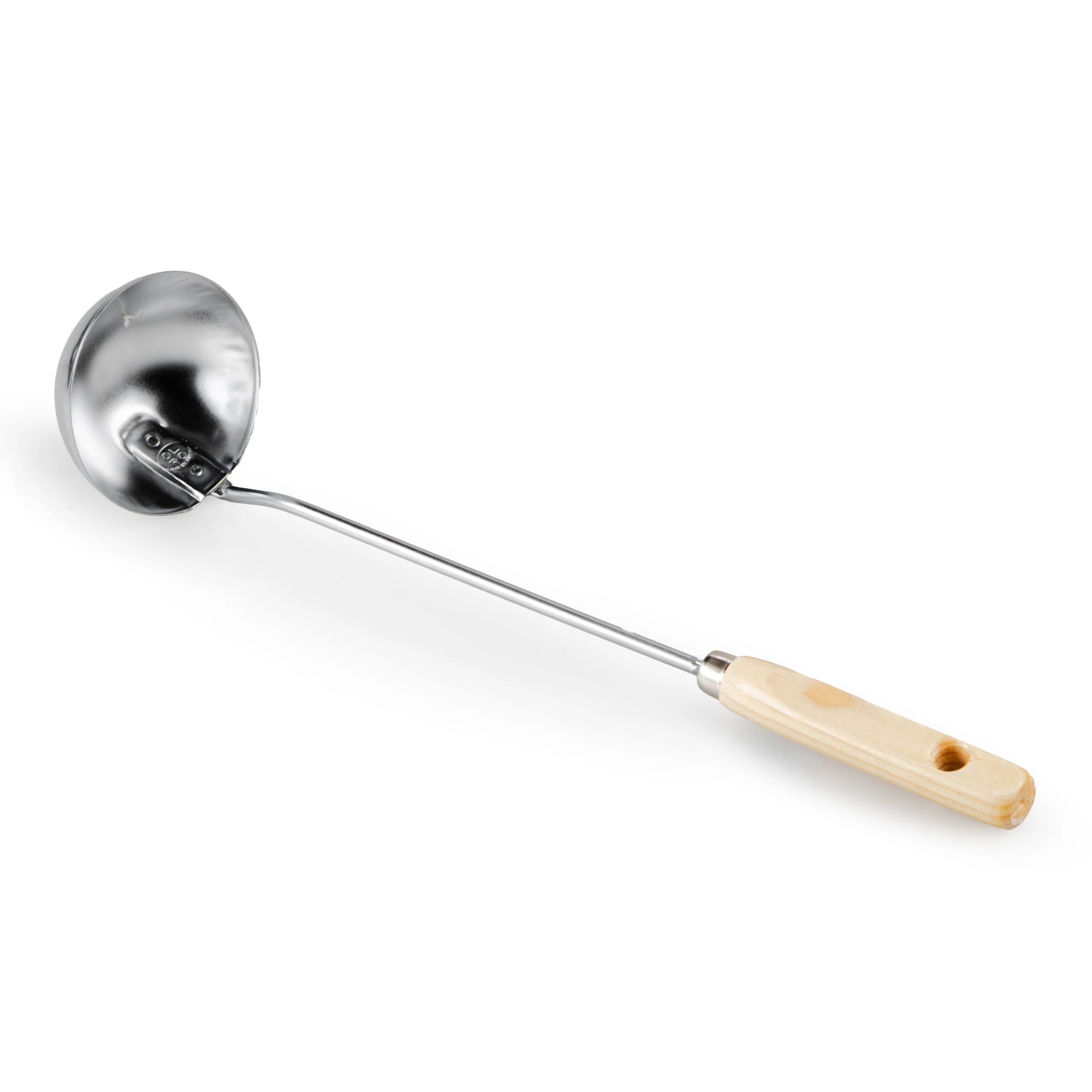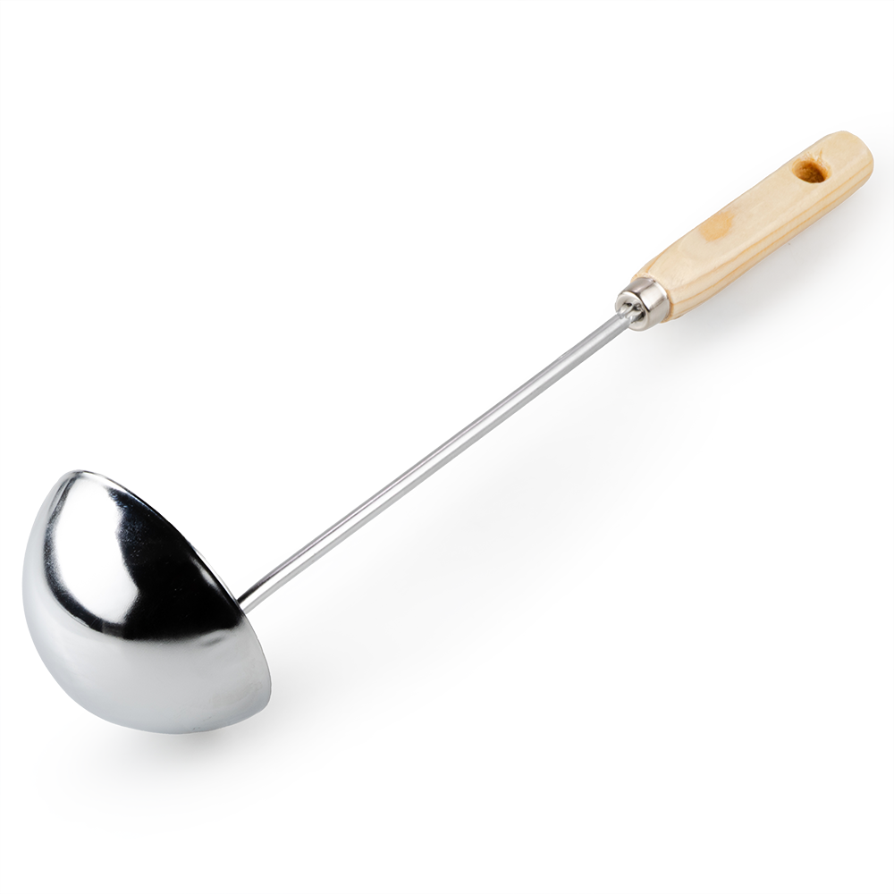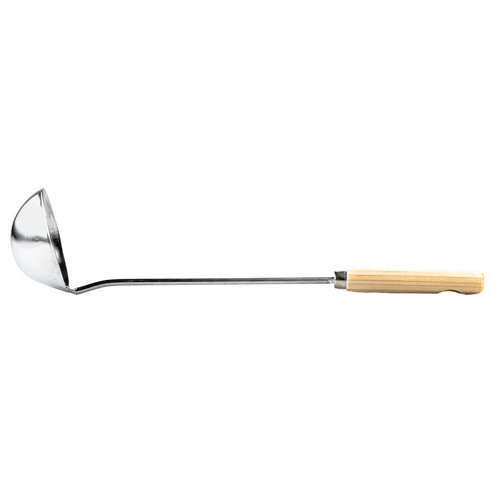 El cuerpo del cucharón está fabricado en acero galvanizado de alta calidad, resistente a la corrosión y al desgaste diario. Su acabado pulido facilita la limpieza y mantiene su brillo original por más tiempo. Gracias a su diseño ergonómico y a su resistencia, este cucharón es apto tanto para cocinas domésticas como profesionales.