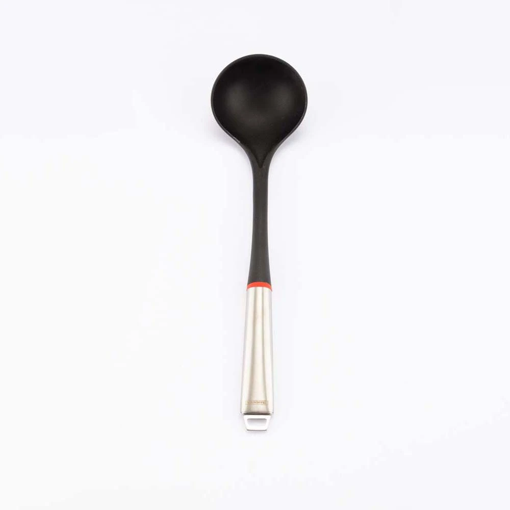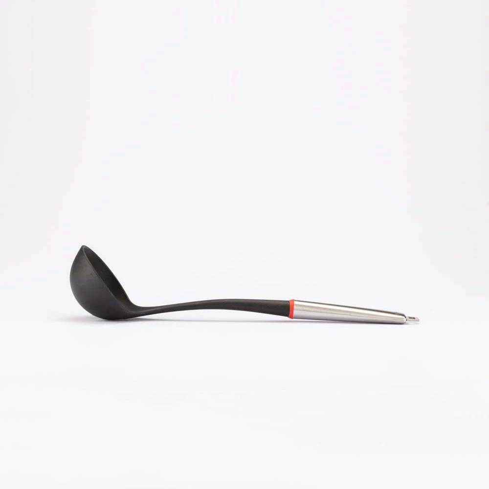 Con sus 35 cm de largo, este cucharón ofrece el alcance ideal para servir directamente desde ollas profundas sin riesgo de salpicaduras. Su cuenco tiene 9 cm de diámetro, lo que permite recoger una buena cantidad de líquido en cada servicio, ahorrando tiempo y esfuerzo.