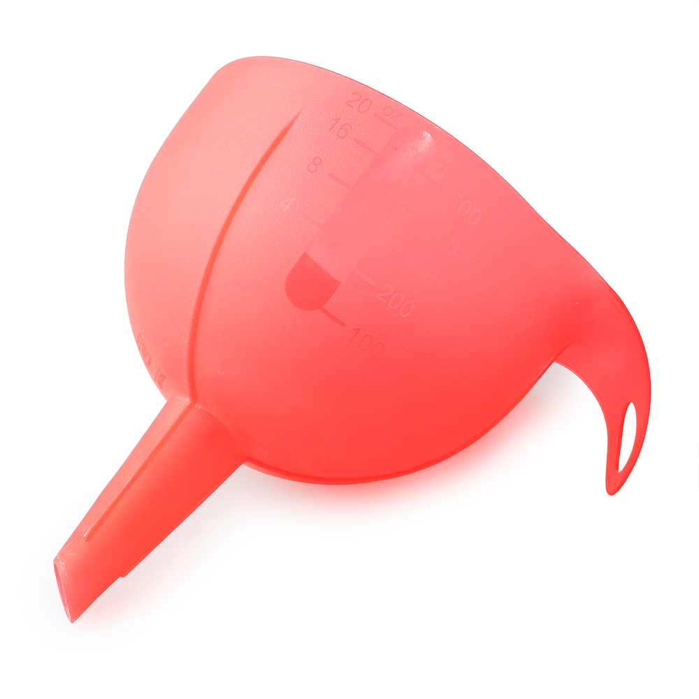 Su diseño compacto facilita el almacenamiento, ocupando muy poco espacio en la cocina, taller o negocio. Se limpia en segundos, simplemente con agua y jabón, y queda listo para volver a usarse. Este embudo es perfecto para verter azúcar, harina, aceite, agua, granos o cualquier ingrediente que requiera precisión.