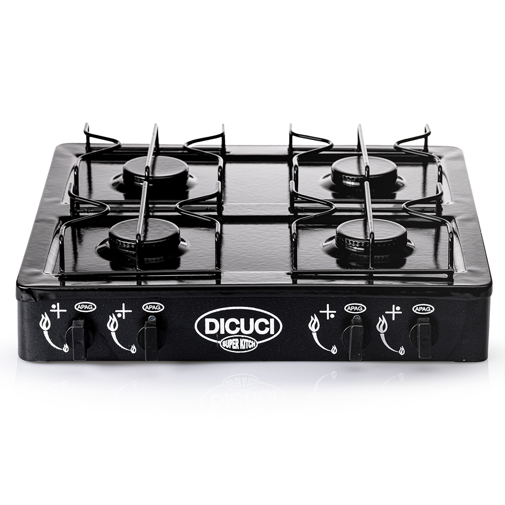Las perillas incluyen una válvula de seguridad que garantiza un funcionamiento seguro y exacto en todo momento. Con un encendido manual y controles de temperatura ajustables, la Estufa De Mesa Con Cuatro Quemadores 48cm Acero Porcelanizado brinda una experiencia de cocina conveniente. Así mismo, su diseño elegante y versátil se adapta a diversos estilos de cocina.