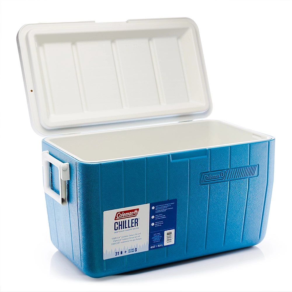 La Hielera Chiller 45.4L Plástico Coleman es el accesorio portátil ideal para mantener tus bebidas y alimentos a la temperatura perfecta. Con una capacidad práctica de 45.4 litros, te permite almacenar hasta 31 latas junto con hielo. Por consiguiente, es perfecta para agua, refrescos, cervezas o incluso alimentos en tus eventos.