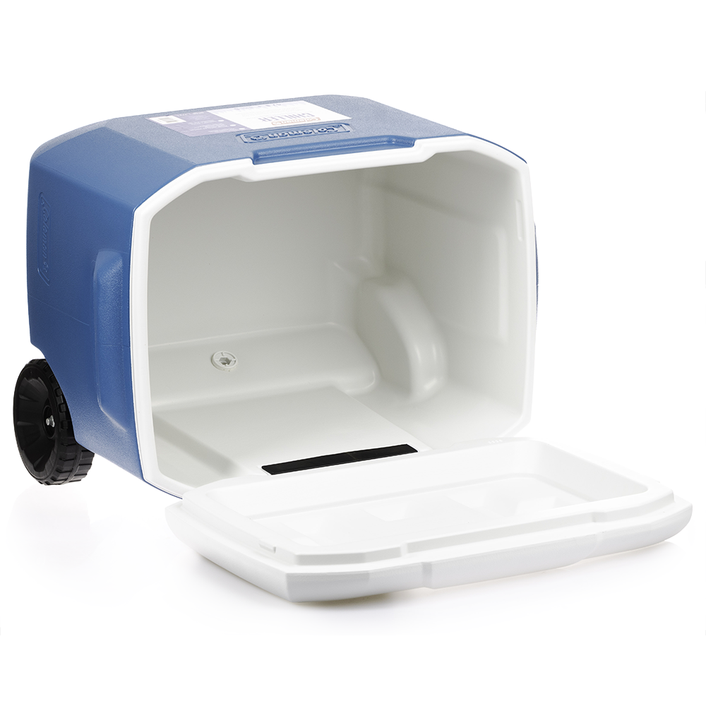 La construcción de doble pared de la Hielera Chiller Con Llantas 57L Plástico Coleman garantiza un aislamiento térmico excepcional. Esto mantiene tus bebidas frías o calientes por mucho más tiempo. Así mismo, su fabricación en plástico resistente asegura durabilidad.