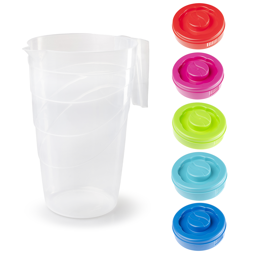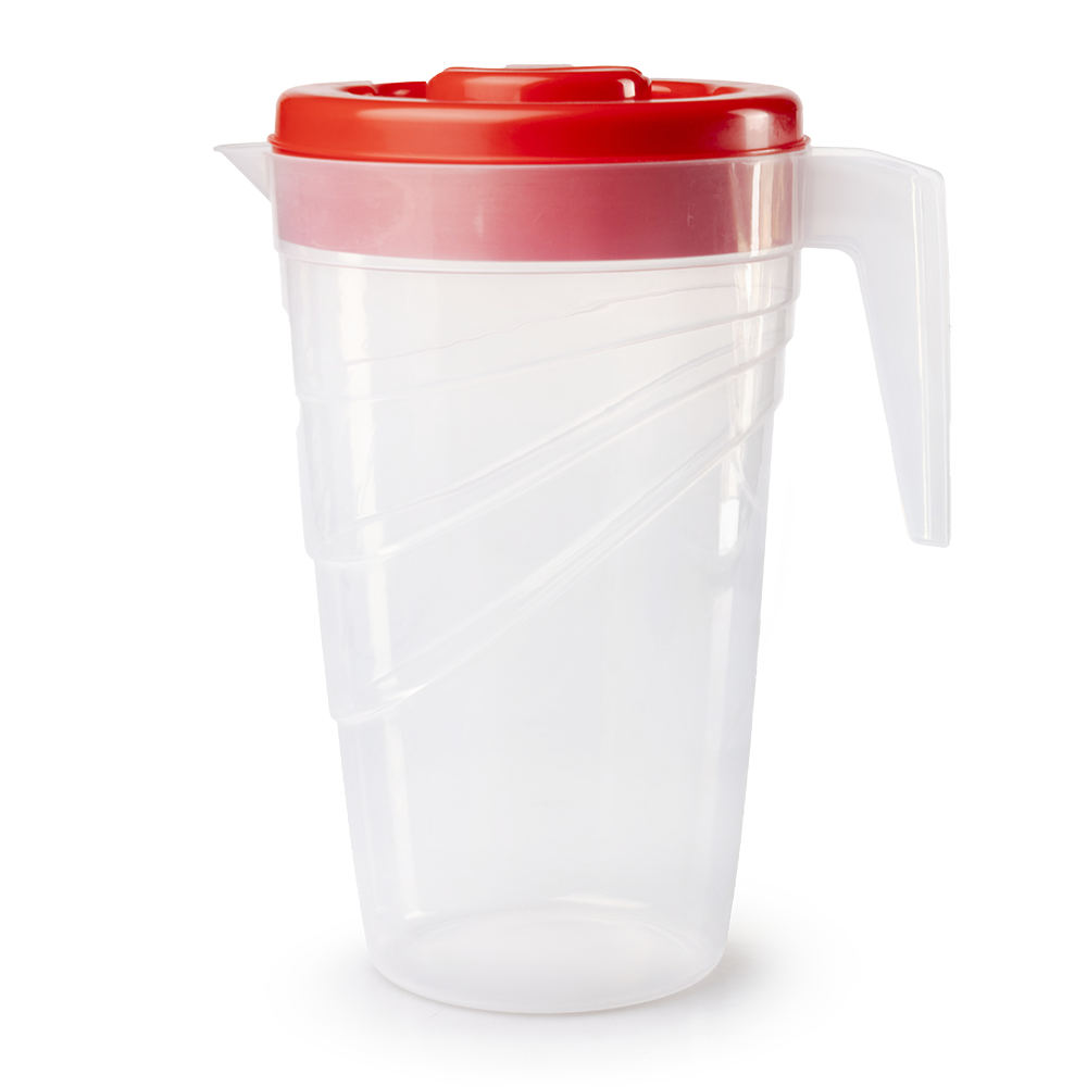 Jarra de plástico transparente con tapa, diseñada para combinar funcionalidad, practicidad y estilo en un solo producto, ideal para restaurantes, cafeterías, bares, oficinas y el hogar. Fabricada con plástico virgen de alta calidad, su diseño permite visualizar el contenido con claridad, garantizando un servicio impecable en cualquier entorno. Incluye un asa ergonómica que ofrece un agarre seguro y cómodo, incluso cuando está llena, y una tapa giratoria innovadora que facilita el vertido, ya sea para colar bebidas o servirlas directamente. Su versatilidad la hace apta para microondas, congelador y lavavajillas, manteniendo su durabilidad y apariencia intactas. Con esta jarra, podrás almacenar y servir tus bebidas favoritas de forma eficiente y elegante, siendo una solución imprescindible para cualquier ocasión o espacio.