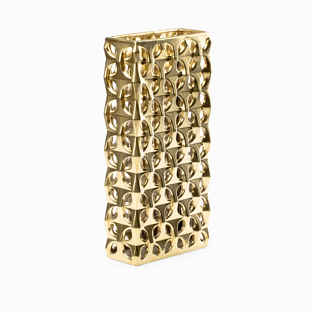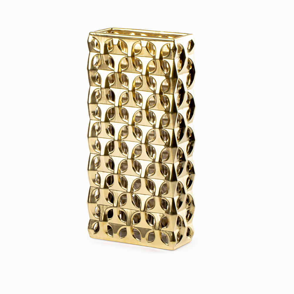 El acabado metalizado en tono dorado del Jarrón Stella Dorado Grande Cerámica Love And Lemons es uno de sus mayores atractivos. Este detalle no solo aporta luminosidad, sino que también transmite lujo y distinción, logrando que el florero se convierta en el centro de atención. Sus medidas de 20 cm de ancho, 10 cm de largo y 43 cm de altura lo hacen perfecto para colocar en cualquier espacio.