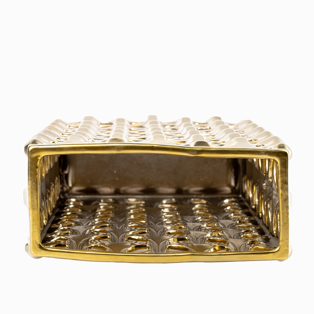 El Jarrón Stella Dorado Grande Cerámica Love And Lemons es una pieza decorativa que aporta elegancia y modernidad a cualquier espacio. Su diseño de curvas suaves y un patrón que asemeja delicadas flores convierten a este florero en un accesorio único, pensado para quienes buscan resaltar la belleza de sus ambientes con un toque sofisticado. Fabricado en loza de alta calidad, este florero no solo es resistente, sino también un elemento versátil que combina con distintos estilos de decoración.