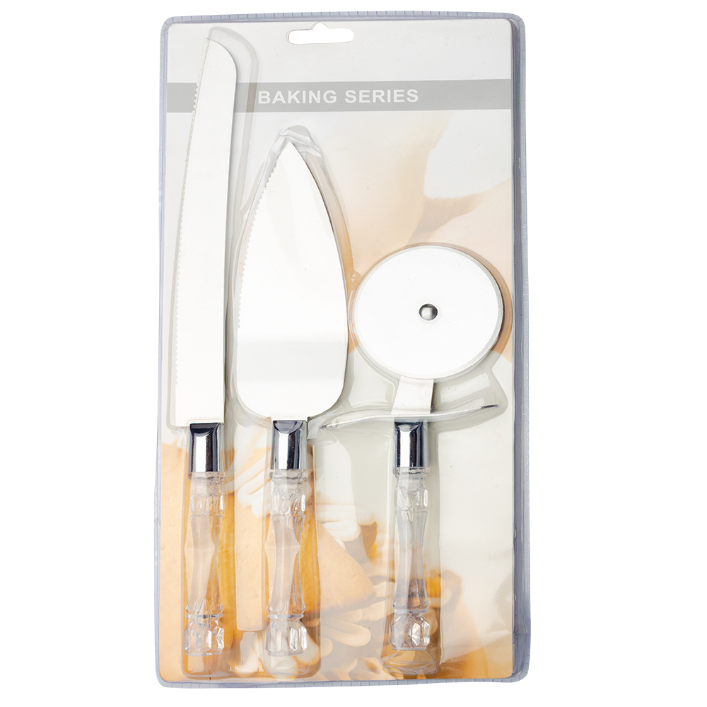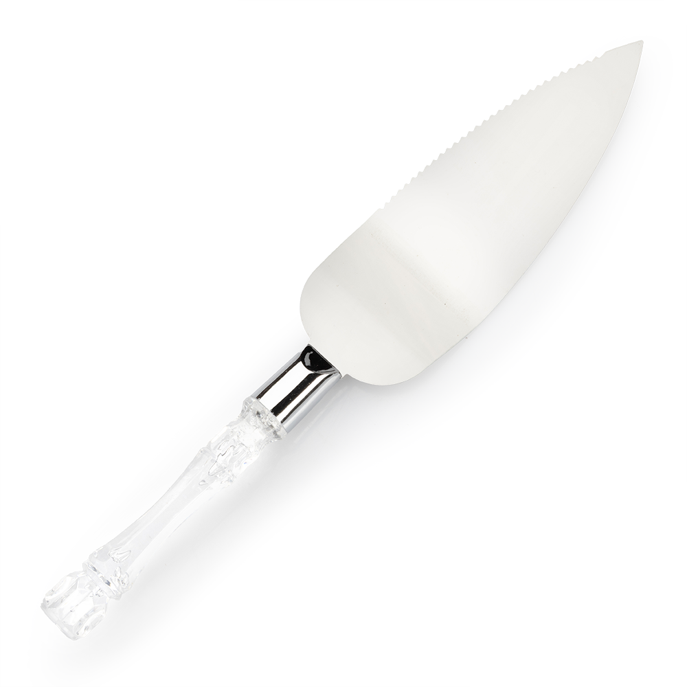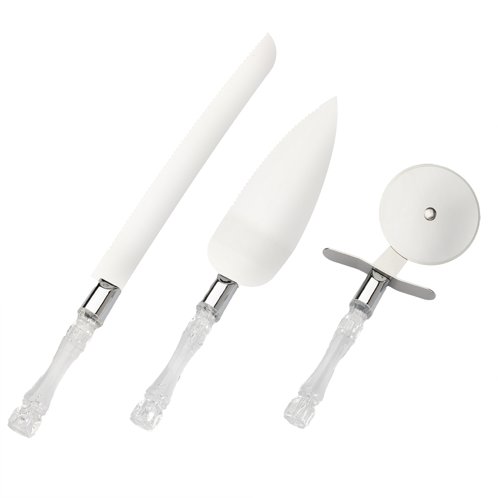 El mango de plástico transparente de cada utensilio proporciona un agarre cómodo y seguro. Facilita su uso, incluso cuando se tienen las manos mojadas o cubiertas de masa. El diseño elegante y moderno de este juego lo hace adecuado para cualquier tipo de pastel o evento, desde celebraciones familiares hasta reuniones formales.