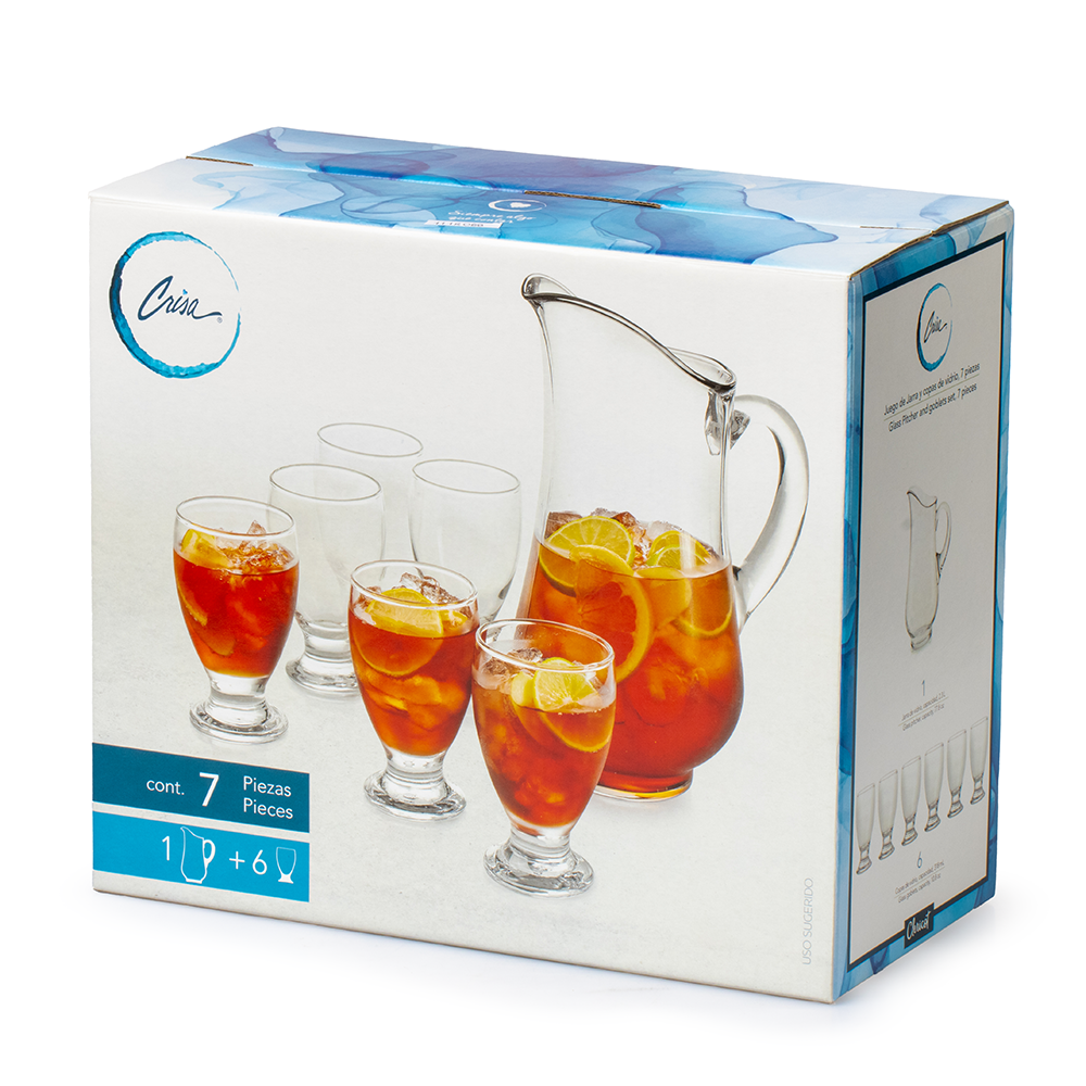 No lo pienses más: adquiere hoy el Juego 7 Piezas Clericot Vidrio Crisa con Jarra y 6 Copas y sorprende a tus invitados con un servicio impecable y sofisticado.
