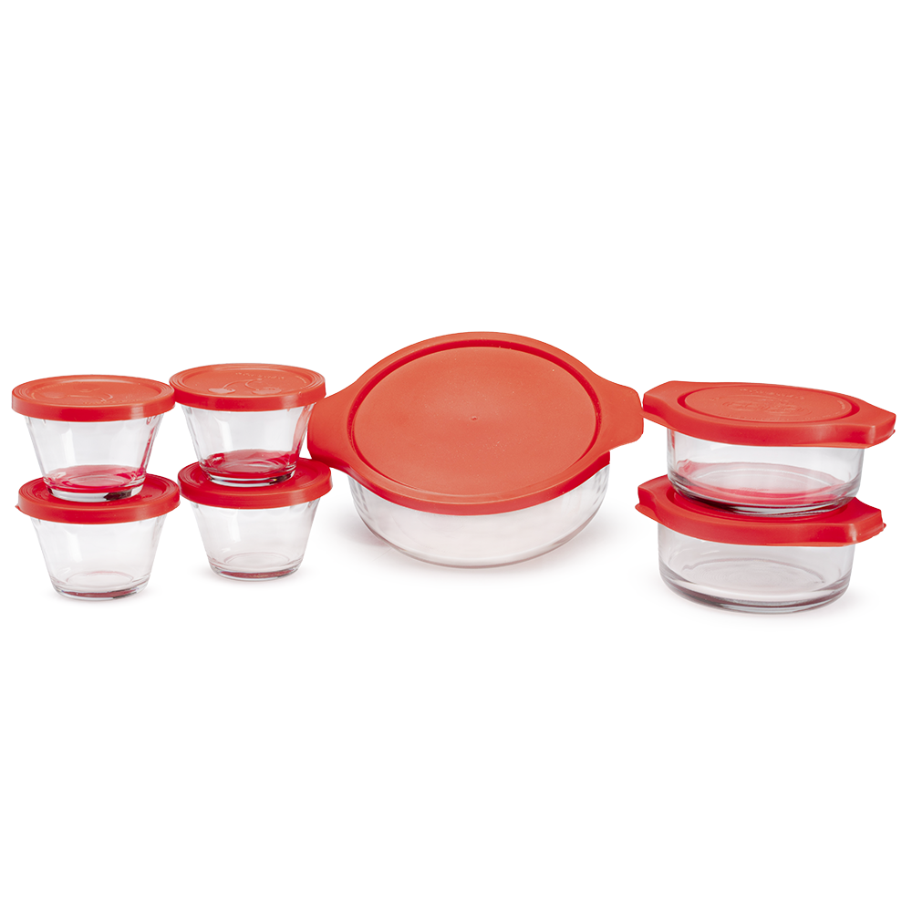 En total, se trata de 14 piezas versátiles, ya que cada recipiente con su respectiva tapa permite preparar, conservar y transportar los alimentos de forma práctica y segura. Además, el vidrio no retiene olores ni sabores, por lo tanto, siempre tendrás preparaciones más frescas y saludables.