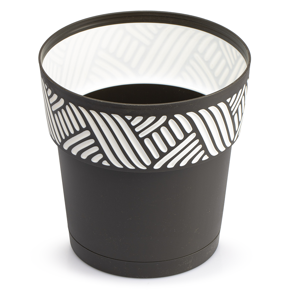 Además de su practicidad, esta maceta combina estética y funcionalidad. Su diseño liso y elegante facilita la limpieza, mientras que los detalles en blanco alrededor aportan un estilo moderno y sofisticado. Es ideal para cualquier estilo decorativo, desde minimalista hasta natural.