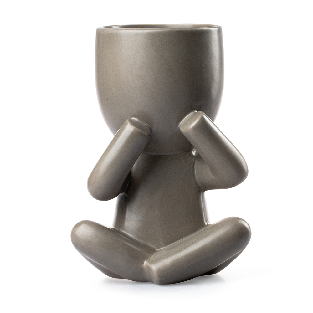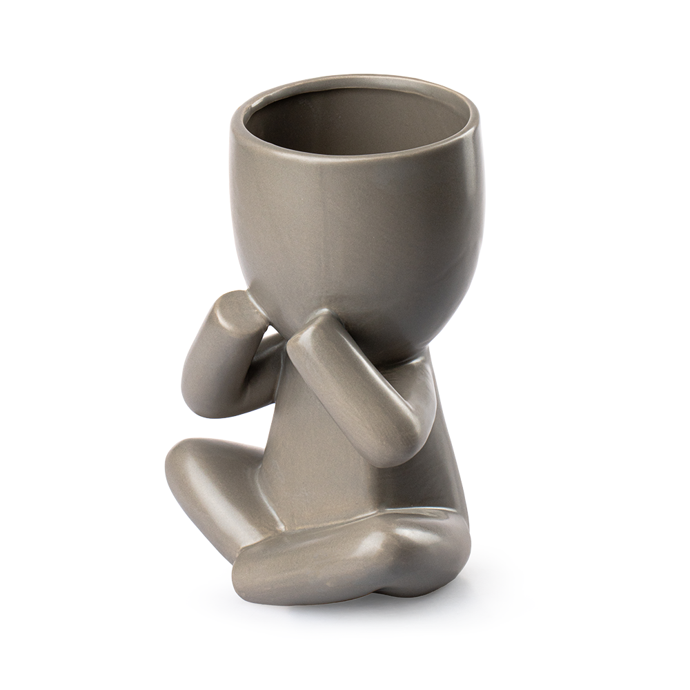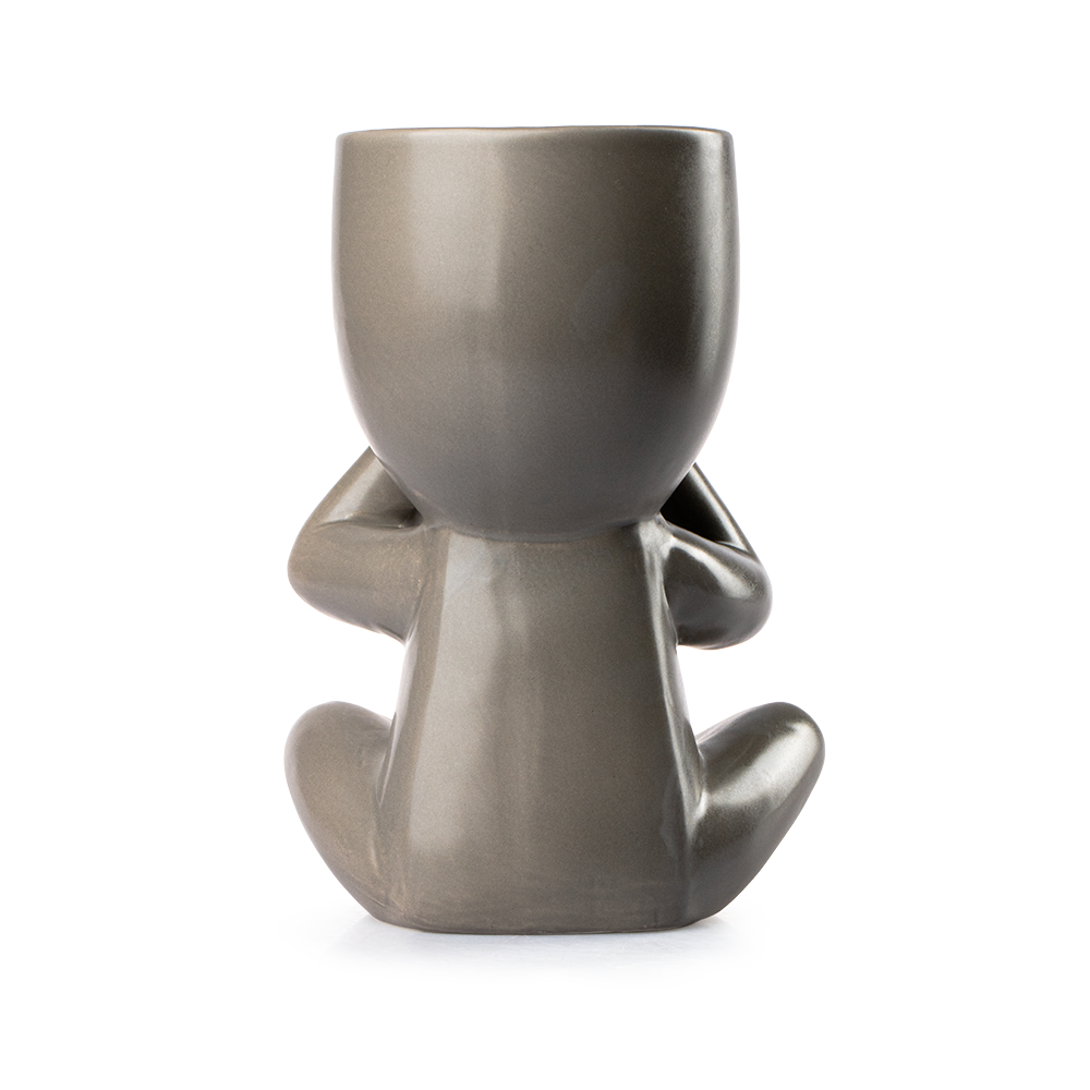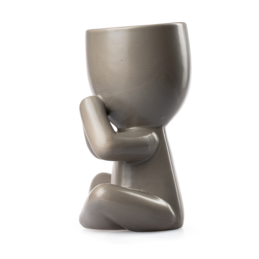 Fabricada en loza gris de alta calidad, esta maceta destaca por su acabado artesanal y sus detalles finos. Su diseño minimalista permite combinarla con estilos modernos, zen o rústicos, aportando un toque elegante. Con 23.5 cm de alto, 14 cm de largo y 19 cm de ancho, tiene el tamaño ideal para mesas, repisas o escritorios. La parte superior del personaje incluye un orificio de 10 cm de diámetro y 10 cm de alto, perfecto para suculentas, cactus o flores pequeñas que llenen de vida tu hogar.