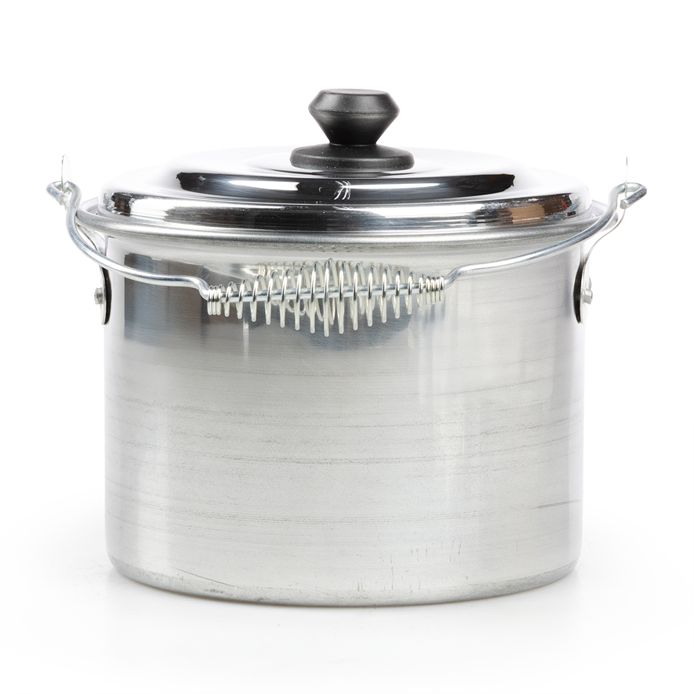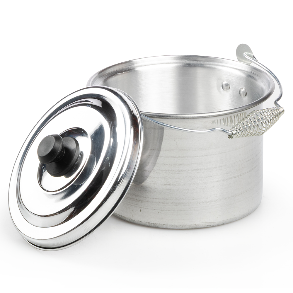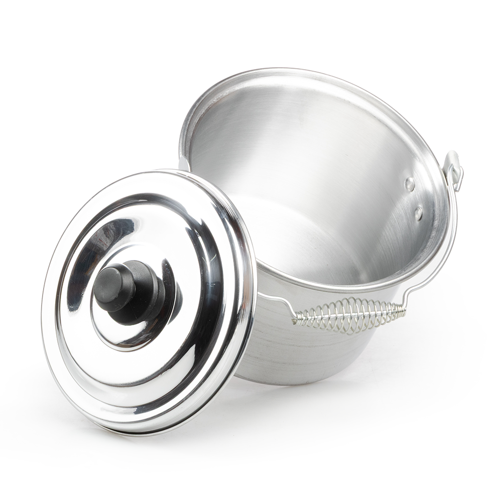 La olla incluye una tapa de aluminio a juego, que ayuda a conservar el calor y el vapor durante la cocción. El mango de la tapa está fabricado en plástico resistente al calor de color negro, lo que permite levantarla sin riesgo de quemaduras.