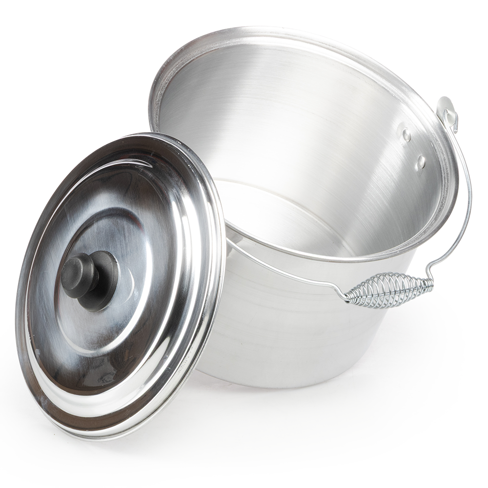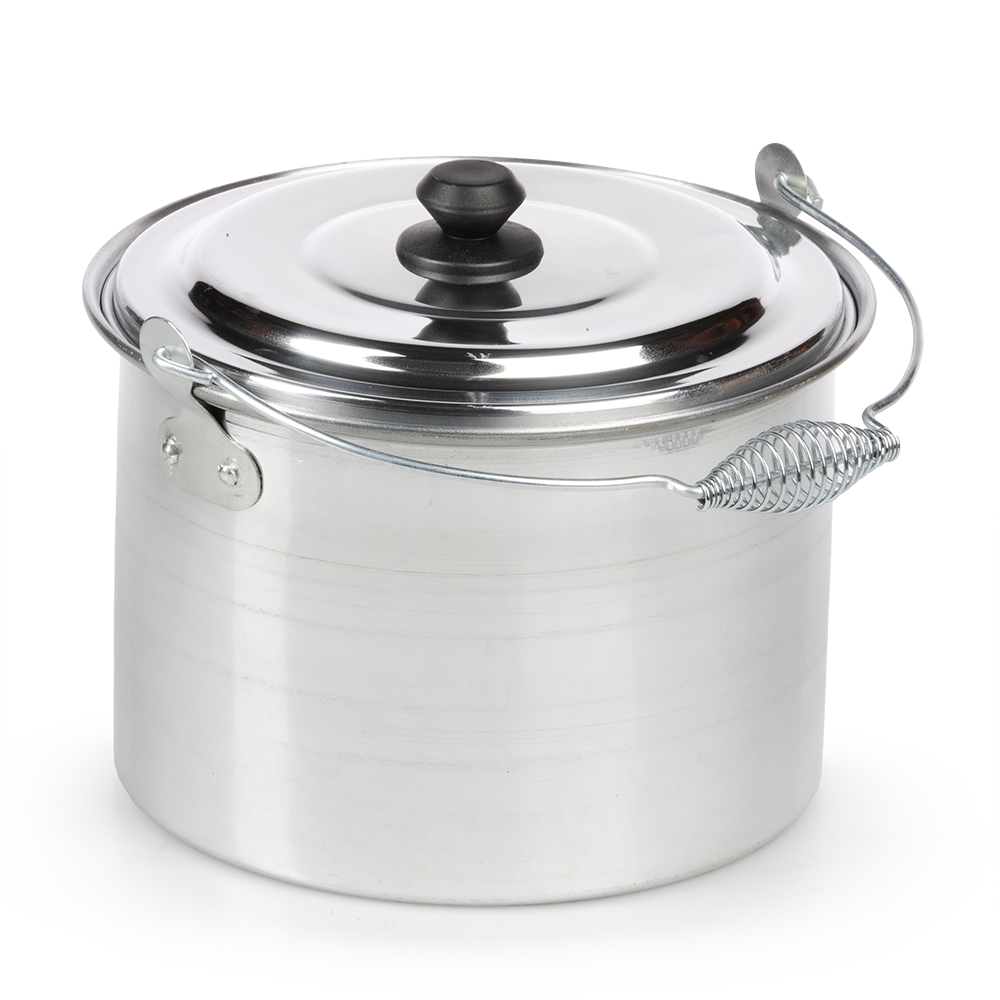 La olla incluye una tapa de aluminio a juego, que ayuda a conservar el calor y el vapor durante la cocción. El mango de la tapa está fabricado en plástico resistente al calor de color negro, lo que permite levantarla sin riesgo de quemaduras.
