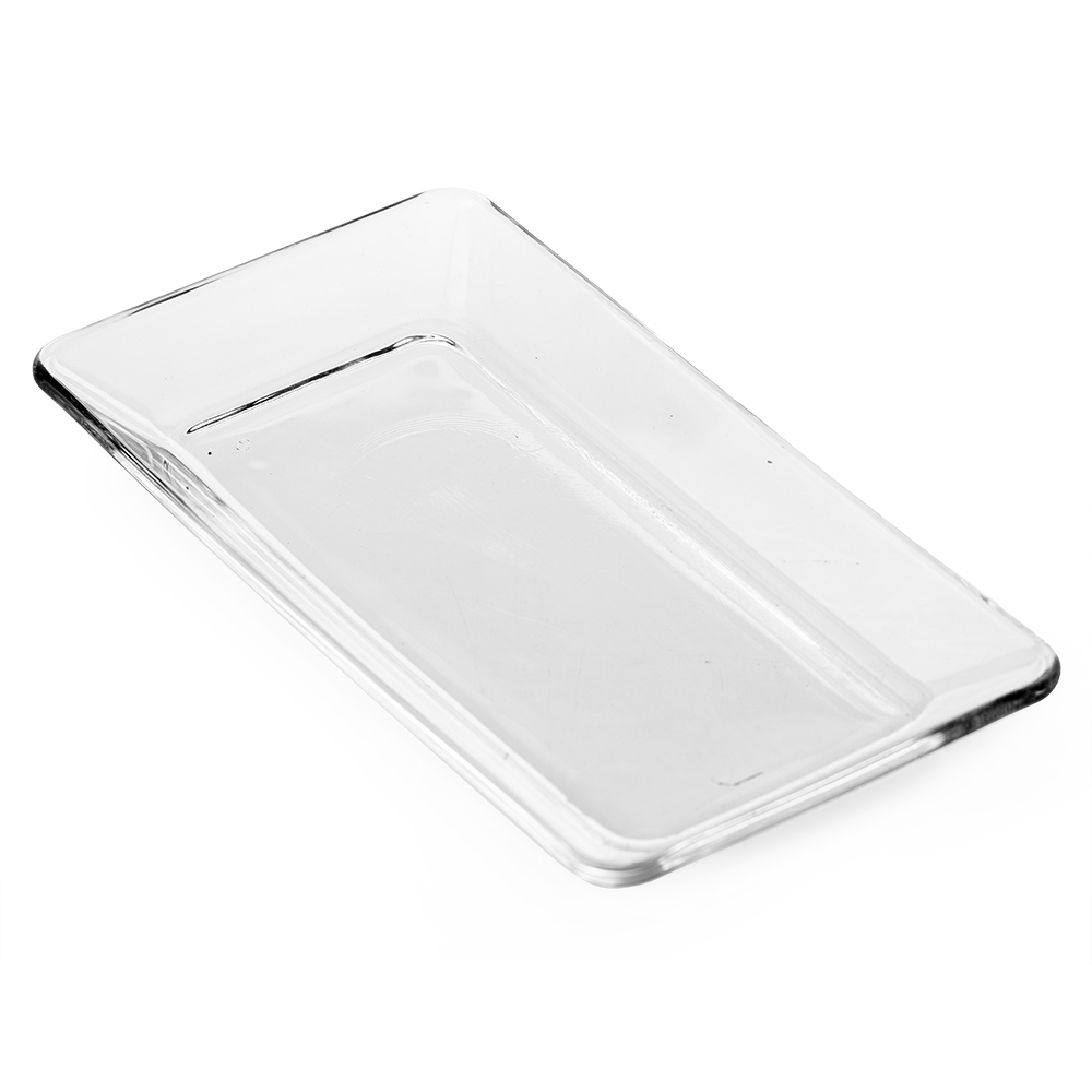 Con unas dimensiones de 12.5cm de ancho por 23.8cm de largo, ofrece el espacio perfecto para presentar entradas, postres, bocadillos o platos principales de manera organizada y atractiva. Su diseño rectangular permite mantener una separación ordenada de los alimentos, resaltando su presentación y evitando mezclas no deseadas. Además, su superficie lisa y transparente realza los colores y texturas de cada platillo, creando un efecto visual sofisticado que eleva cualquier comida.