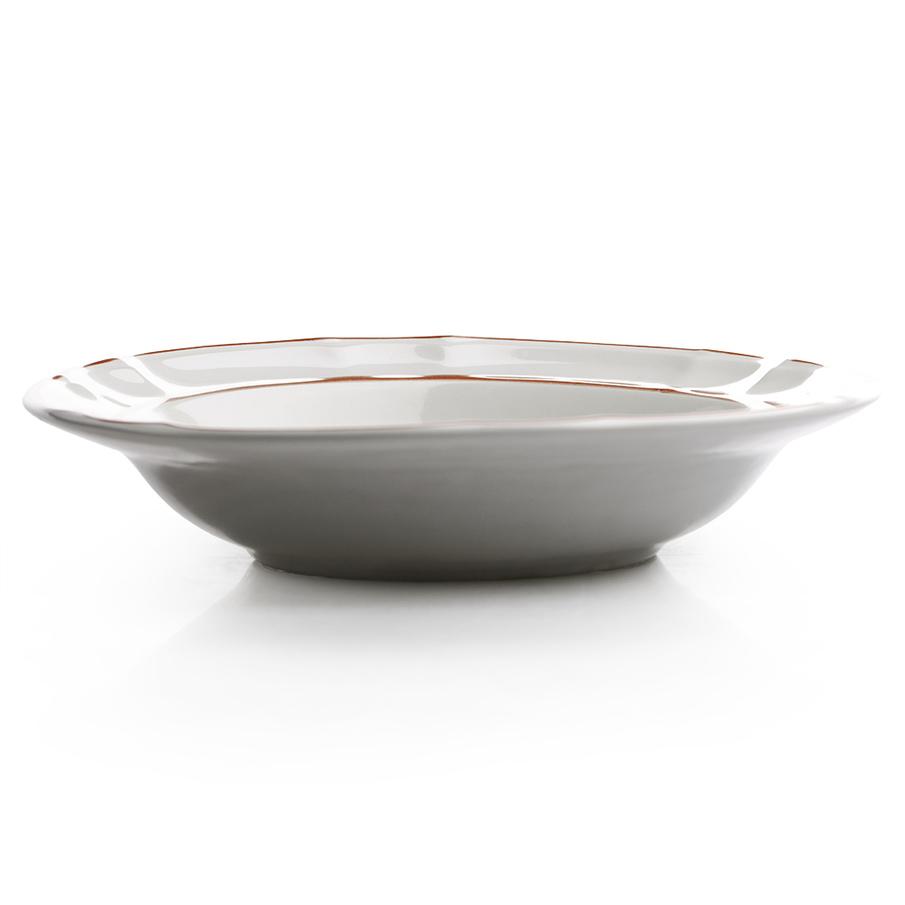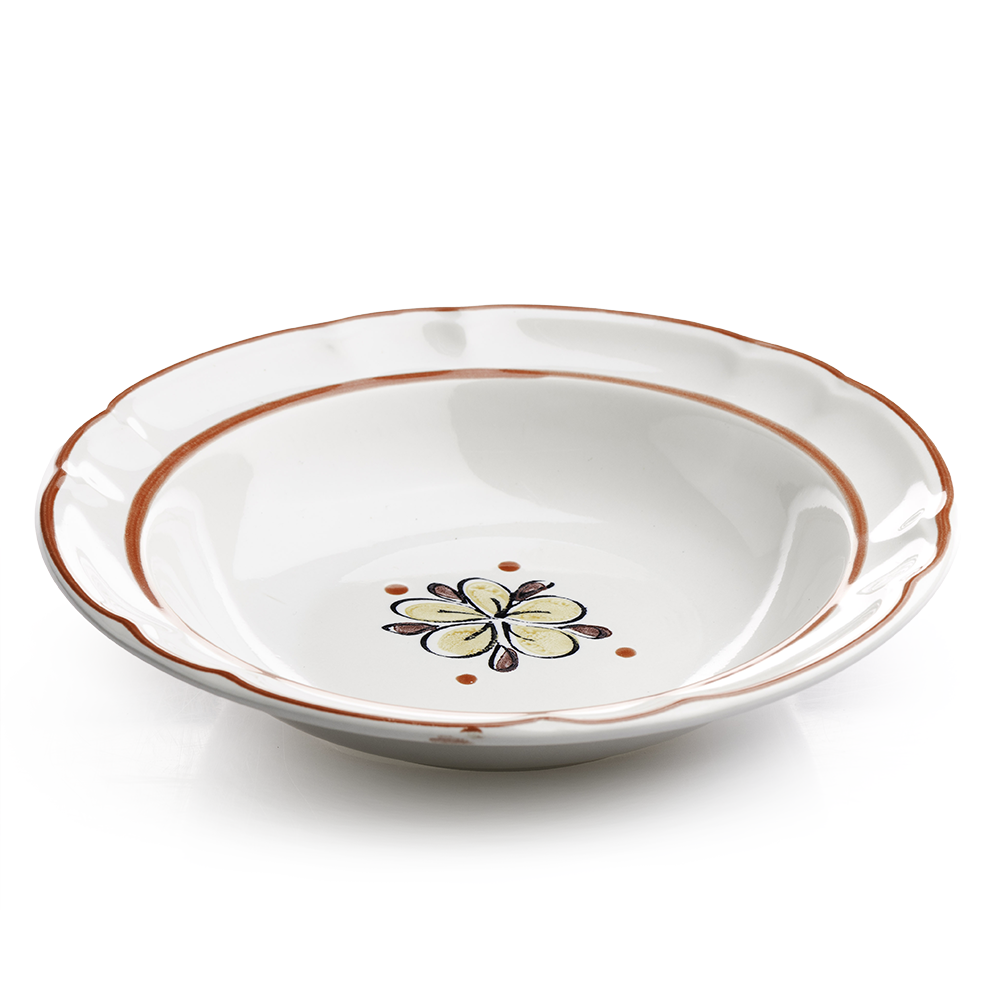 Fabricado en cerámica de alta calidad por la reconocida marca Cinsa Santa Anita, este plato garantiza durabilidad y resistencia para uso diario. Su color blanco con líneas color café alrededor del borde y una delicada flor en el centro le aportan un toque de estilo sofisticado que realza cualquier mesa. Este diseño no solo es estéticamente atractivo, sino que también permite combinarlo con otros elementos de tu vajilla, creando armonía y elegancia en cada comida.