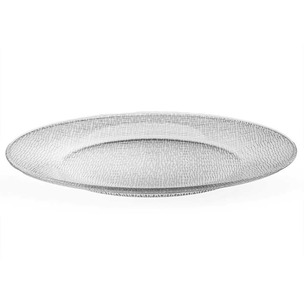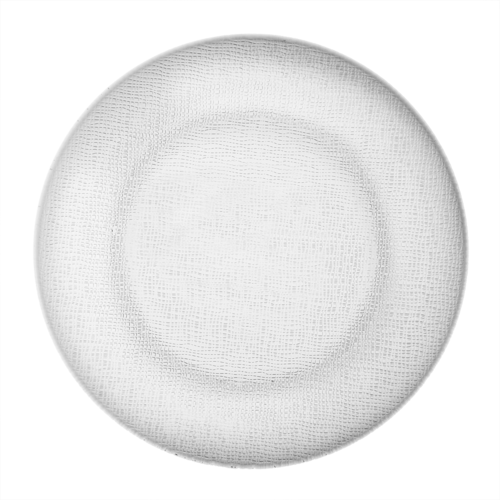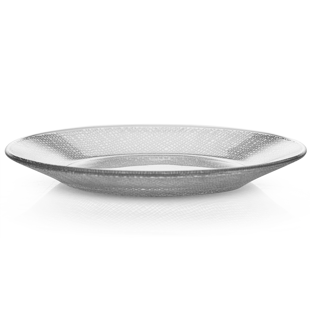 Fabricado por Crisa, marca reconocida en cristalería de mesa, este plato ofrece la precisión del vidrio con una estética natural. Su textura tipo yute aporta un detalle decorativo que destaca sin recargar el ambiente. El material es transparente, lo cual permite que los colores de los alimentos resalten con mayor claridad.