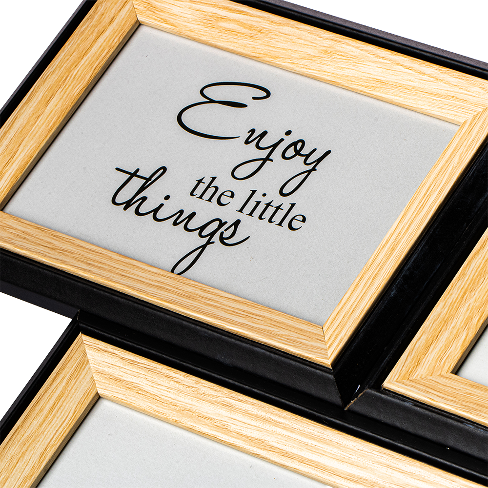 El material MDF utilizado en la fabricación del Portarretrato Collage 63X43cm MDF Love And Lemons asegura durabilidad y resistencia. Mientras que su acabado en tonos madera con negro brinda un toque de sofisticación y elegancia. Además, su construcción robusta garantiza que las fotografías se mantengan protegidas y perfectamente enmarcadas, evitando deformaciones o daños con el paso del tiempo.