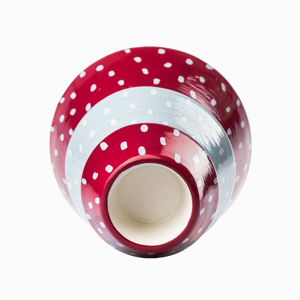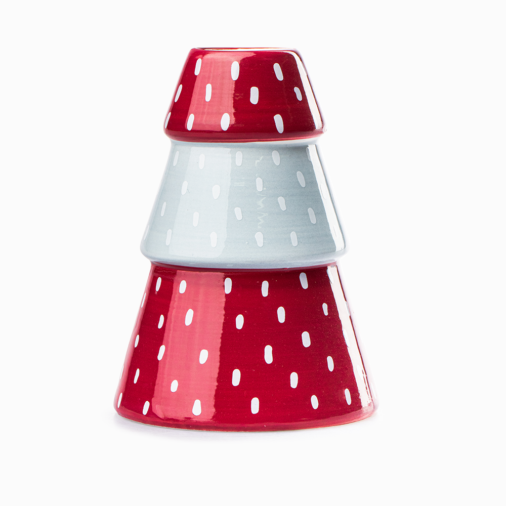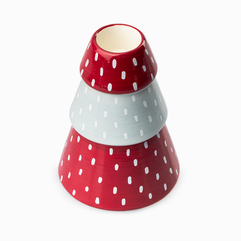 Fabricado en dolomita resistente, este portavela garantiza una gran durabilidad. Además, destaca por su diseño en tonos rojo y gris con delicados puntos blancos. Estos detalles le dan un toque especial y lo convierten en una pieza decorativa versátil. Puedes integrarlo fácilmente con el resto de tu decoración navideña o combinarlo con estilos modernos y tradicionales.