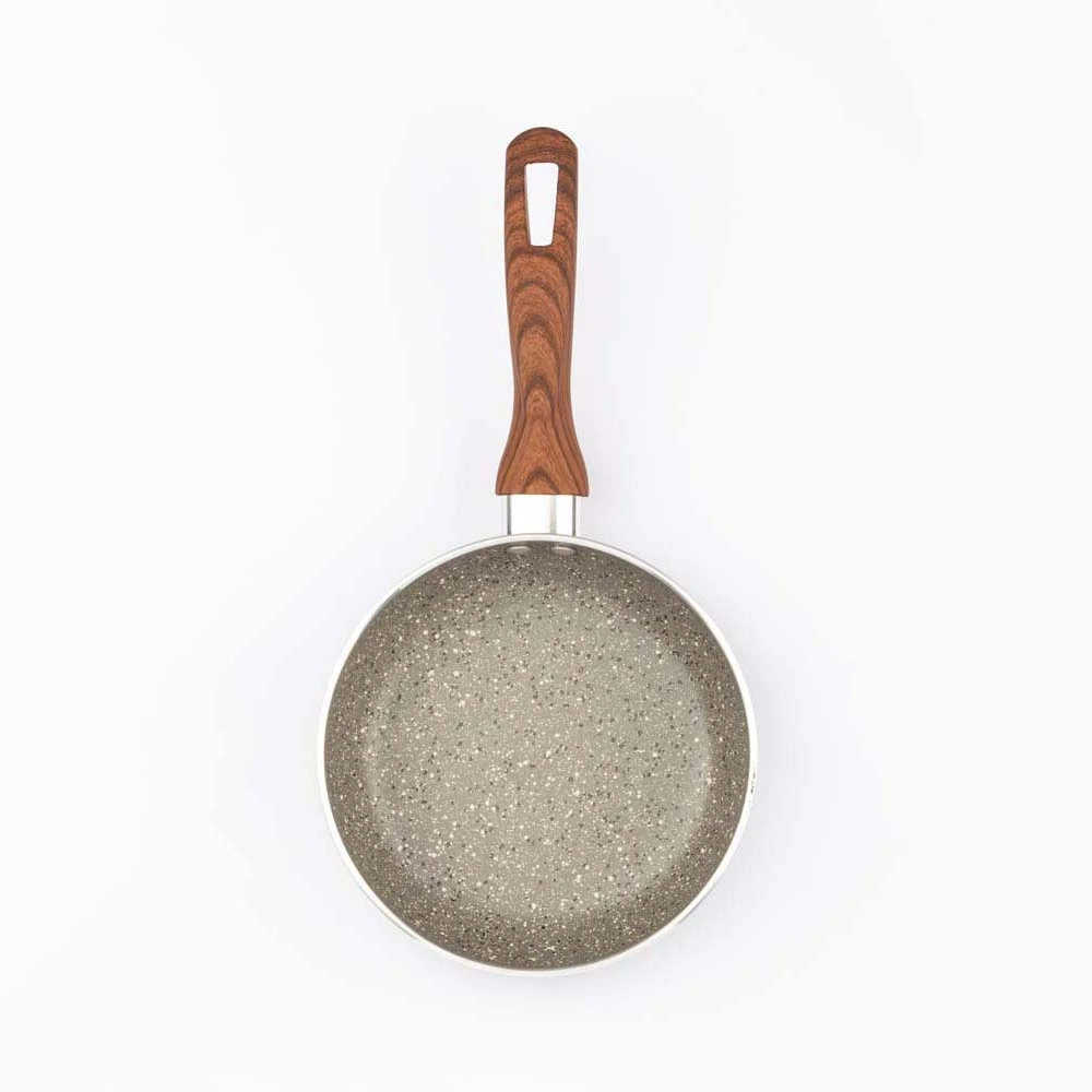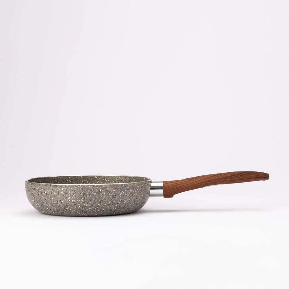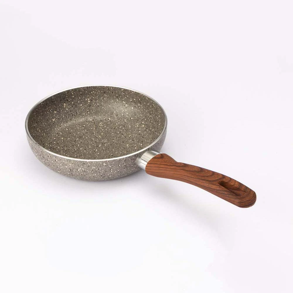 El diseño de madera del mango añade un toque elegante y natural, y también ofrece un agarre cómodo y seguro durante el uso. Este diseño ergonómico mejora la experiencia de cocinado, brindando mayor control y seguridad al momento de mover el sartén.