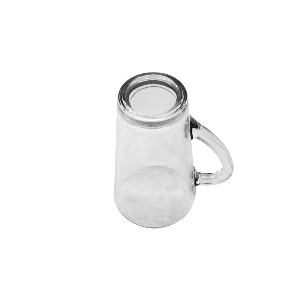 Fabricado en vidrio transparente de alta calidad por Crisa Libbey, una de las marcas líderes en cristalería en México y el mundo. Este tarro garantiza durabilidad, higiene y una excelente presentación en cada uso. Su diseño clásico tipo tarro, con asa robusta, facilita el agarre seguro y cómodo, incluso con bebidas frías que puedan generar condensación.