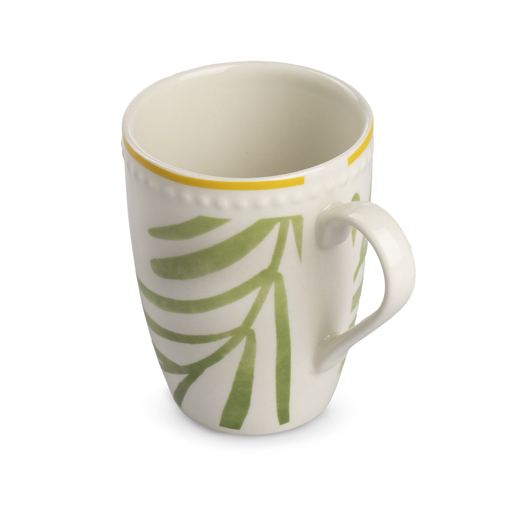El diseño tipo mug con asa ergonómica proporciona un agarre firme y cómodo, incluso con líquidos calientes. El estampado de plantita le da un toque delicado, relajante y visualmente atractivo que combina con decoraciones naturales, rústicas o contemporáneas.