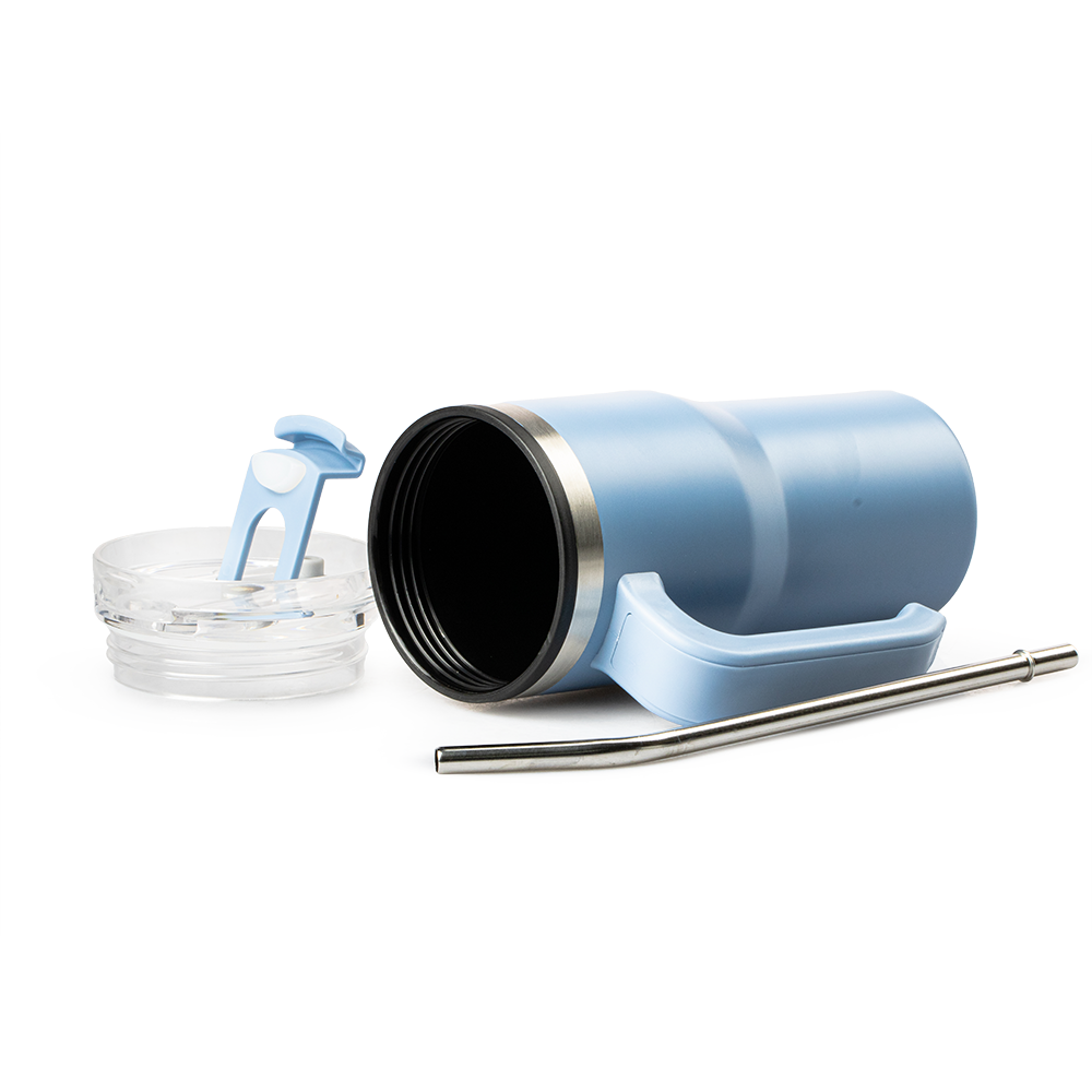 Termo Con Popote Azul 650ml Acero Inoxidable Top Choice