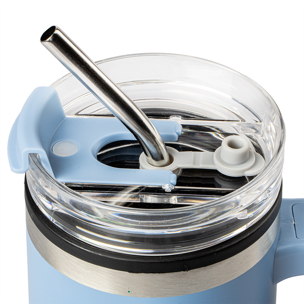 El diseño del Termo Con Popote Azul 650ml Acero Inoxidable Top Choice destaca por su funcionalidad. Incluye una tapa transparente abatible y una boquilla con tapón de silicona que sella el orificio. Además, este sistema evita derrames y facilita un consumo cómodo en cualquier situación. El popote de acero inoxidable es resistente, reutilizable y elegante.
