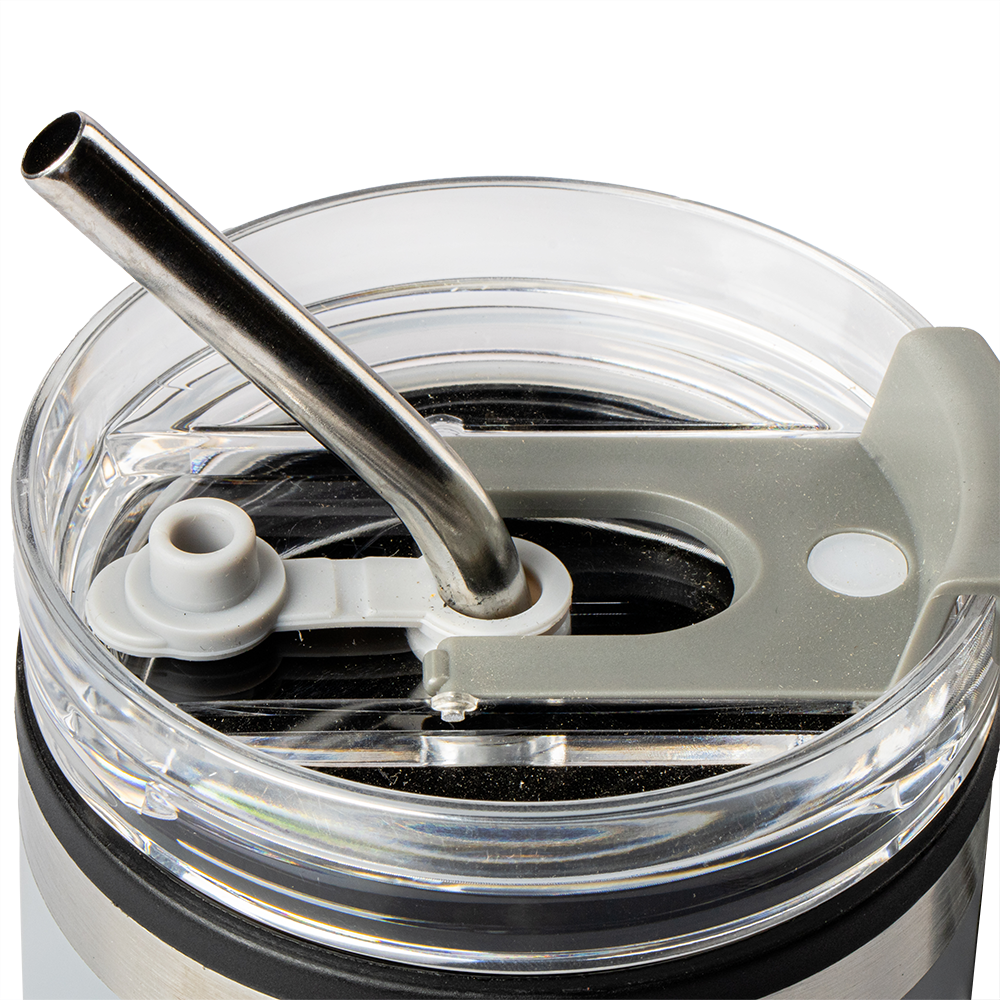 El diseño del Termo Con Popote Gris 650ml Acero Inoxidable Top Choice destaca por su funcionalidad. Incluye una tapa transparente abatible y una boquilla con tapón de silicona que sella el orificio. Además, este sistema evita derrames y facilita un consumo cómodo en cualquier situación. El popote de acero inoxidable es resistente, reutilizable y elegante.