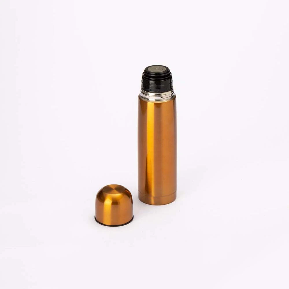 Fabricado con acero inoxidable de alta resistencia, ofrece durabilidad y un acabado elegante en color cobre que destaca en cualquier entorno. Su diseño de 24.5 cm de altura es compacto y fácil de transportar, ideal para mochilas, bolsos o portavasos de coche.