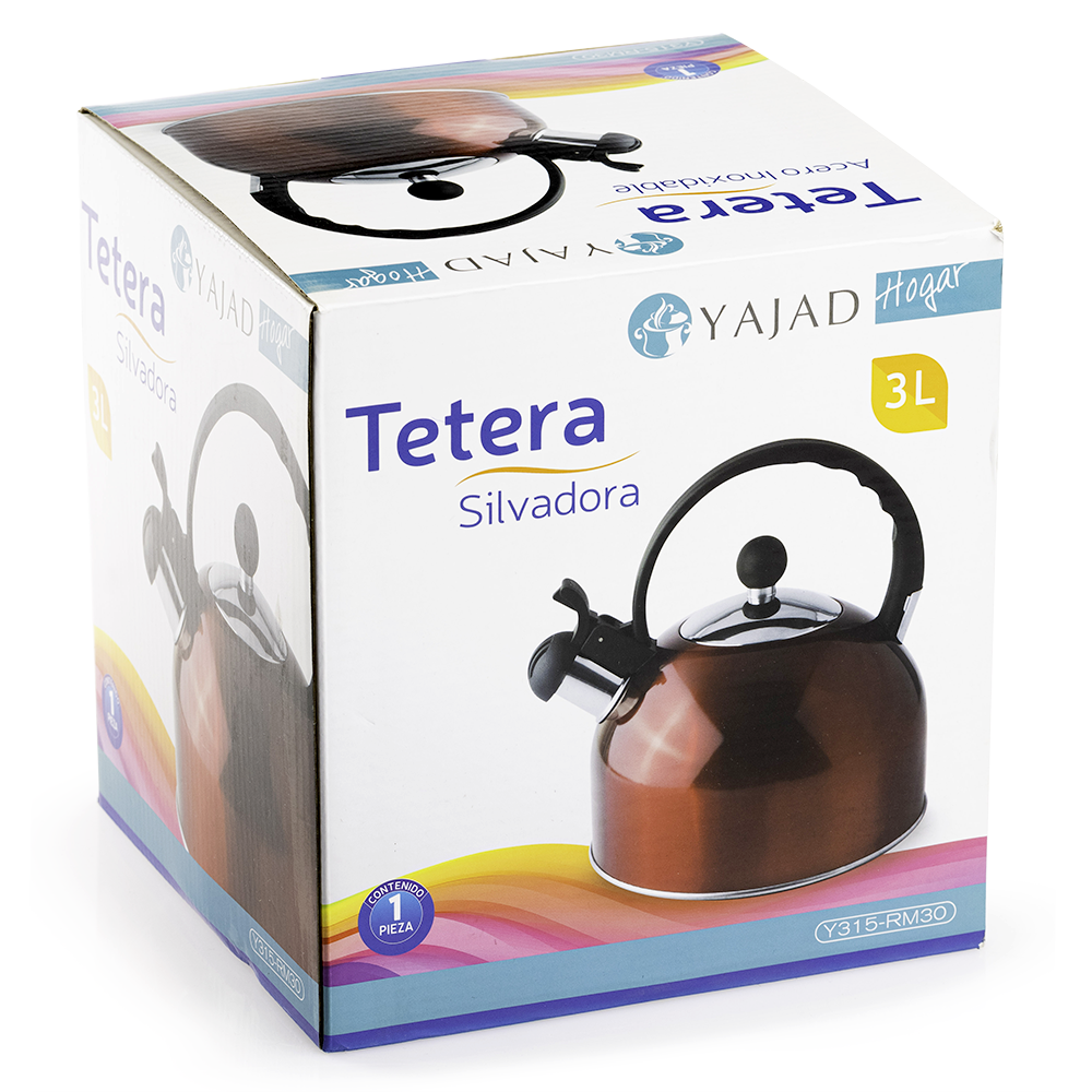El silbato integrado en la boquilla te avisa cuando el agua ha alcanzado su punto de ebullición, ayudando a evitar que se derrame o se sobrecaliente. Esto la convierte en una opción ideal para quienes buscan una solución segura y eficiente. Además, su mango ergonómico, fabricado con material aislante, permite un agarre firme y cómodo sin riesgo de quemaduras. La tapa de la Tetera Silbadora 3L, encaja de forma precisa para garantizar un uso cómodo y libre de derrames accidentales. Su base está diseñada para una distribución uniforme del calor, lo que reduce el tiempo de calentamiento y ayuda a ahorrar energía.