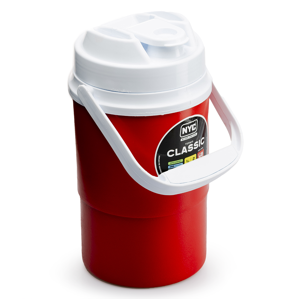 Fabricado por NYC, una marca reconocida por su resistencia y funcionalidad, este termo está elaborado con plástico de alta calidad, lo que lo hace ligero, fácil de transportar y resistente a impactos. Sus colores llamativos, rojo y azul, no solo aportan un estilo moderno, sino que también permiten identificarlo fácilmente.