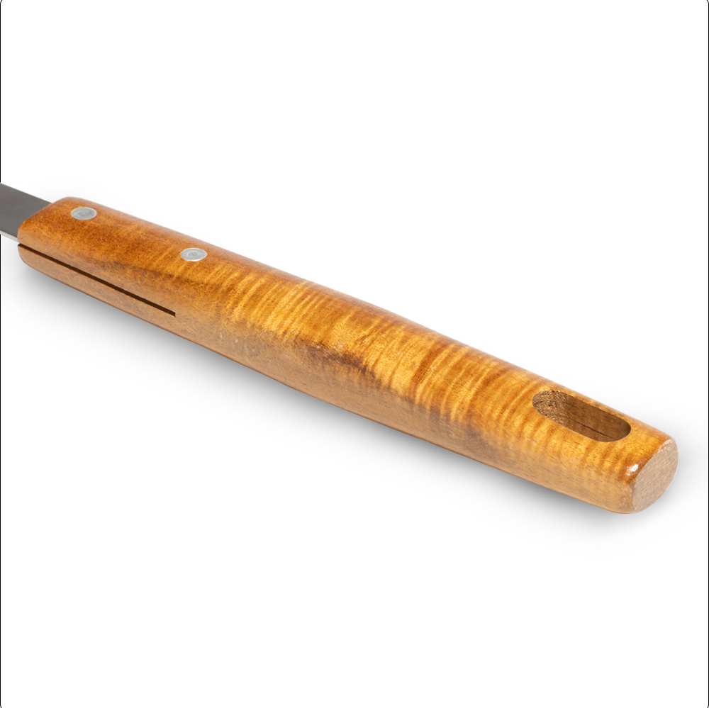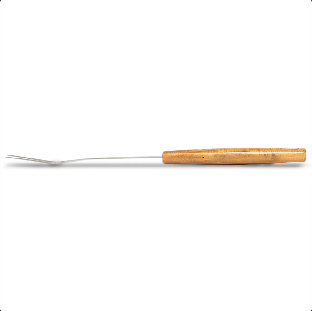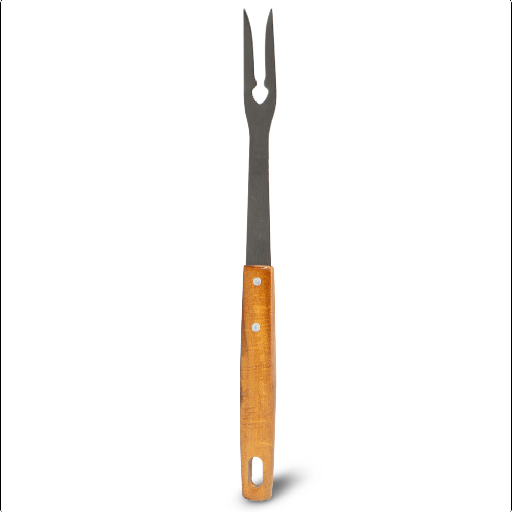 Además, el mango de madera natural mide 20 cm y aporta un toque elegante y tradicional. Su forma ergonómica asegura un agarre firme y cómodo, reduciendo la fatiga incluso en largas sesiones de asado. Gracias a su longitud total de 42 cm, podrás trabajar manteniendo una distancia segura del fuego o de superficies calientes.
