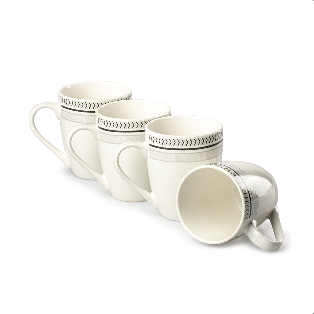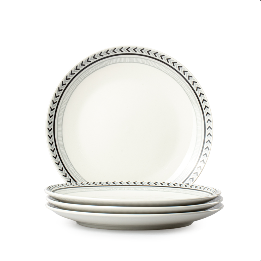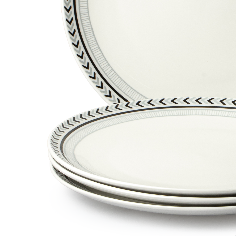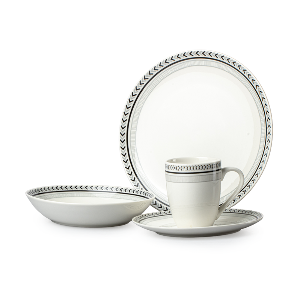 Esta vajilla contiene cuatro platos trinche de 27 centímetros de diámetro, cuatro platos de ensalada de 19.5 centímetros, cuatro platos soperos de 20 centimetros y cuatro tarros de 8.5 centímetros de diámetro con una capacidad de 320 mililitros. Su diseño moderno se adapta fácilmente a cualquier estilo de cocina o comedor, aportando un toque refinado y versátil.