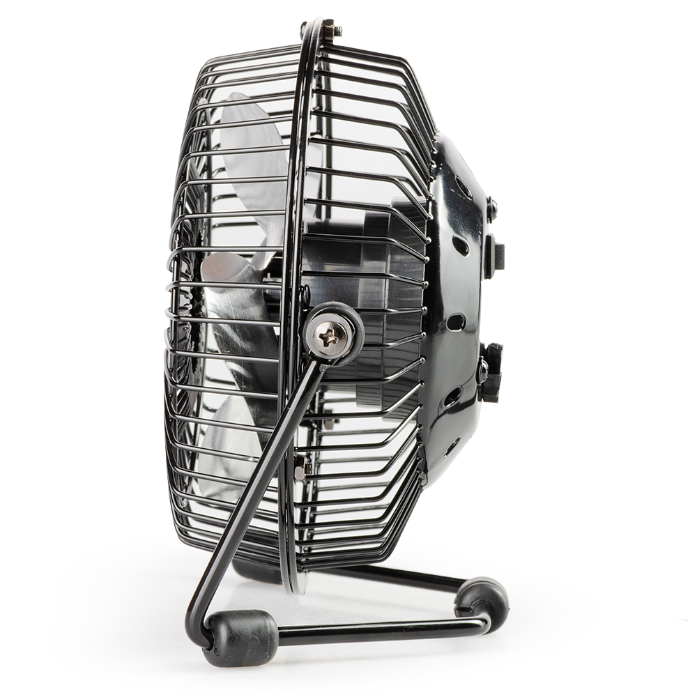 A pesar de su tamaño compacto, cuenta con un cabezal de inclinación ajustable que te permite dirigir el flujo de aire exactamente hacia donde lo necesitas, mejorando tu comodidad durante horas de trabajo o estudio. Su diseño totalmente fabricado en metal garantiza una estructura resistente, duradera y con un estilo moderno que combina con cualquier entorno.