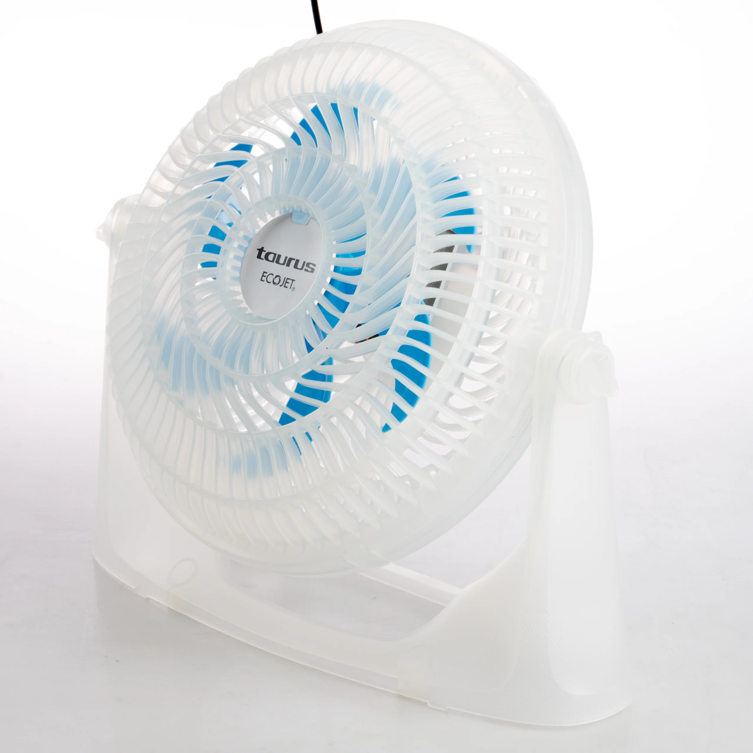 Mantén tus espacios frescos y silenciosos con el Ventilador Escritorio 10 Pulgadas Taurus. Diseñado con la exclusiva tecnología ECOJET, que ofrece más aire con menos ruido. A diferencia de los ventiladores convencionales, sus rejillas aerodinámicas están diseñadas para propulsar el aire hacia el exterior, en lugar de bloquearlo, lo que permite un flujo de aire más eficiente. Con hasta 30% más ventilación y un menor consumo energético.