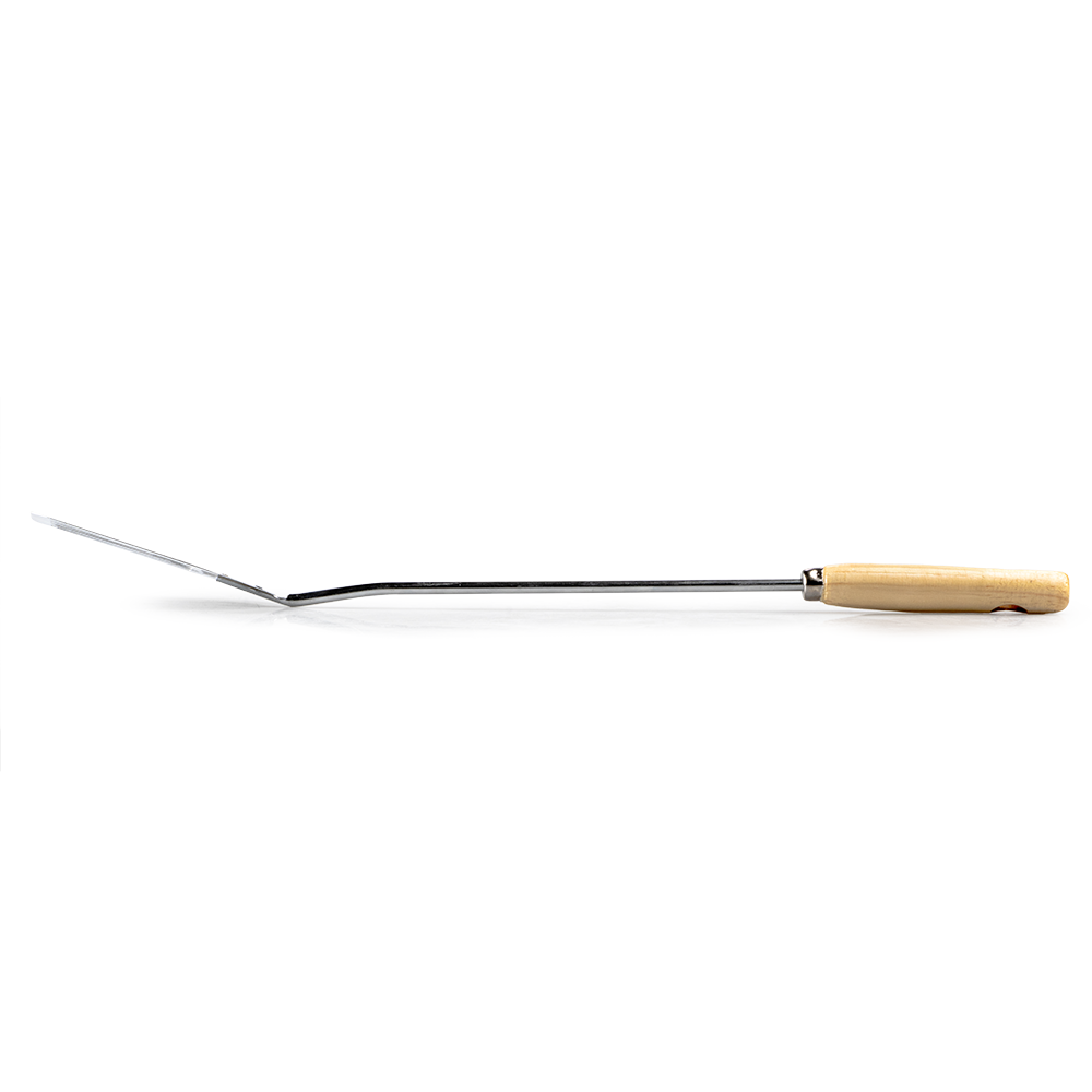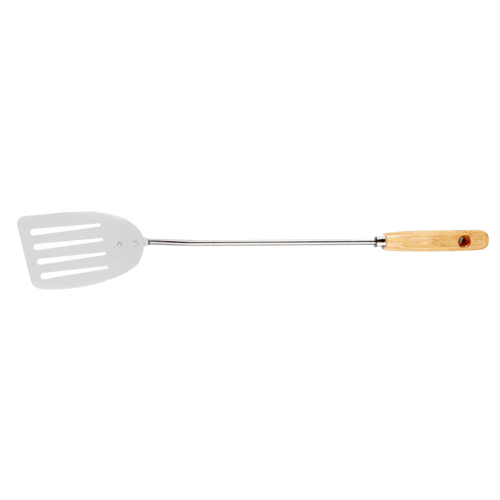 Con una longitud de 47 centímetros, ofrece un alcance extra largo que protege tus manos del calor intenso al voltear, servir o manipular alimentos en parrillas, planchas, sartenes u ollas profundas. Su mango ergonómico de madera natural no solo brinda un agarre firme y cómodo, sino que también aporta un estilo rústico y elegante que combina con cualquier cocina. La madera es resistente al calor y conserva una temperatura agradable al tacto durante su uso.